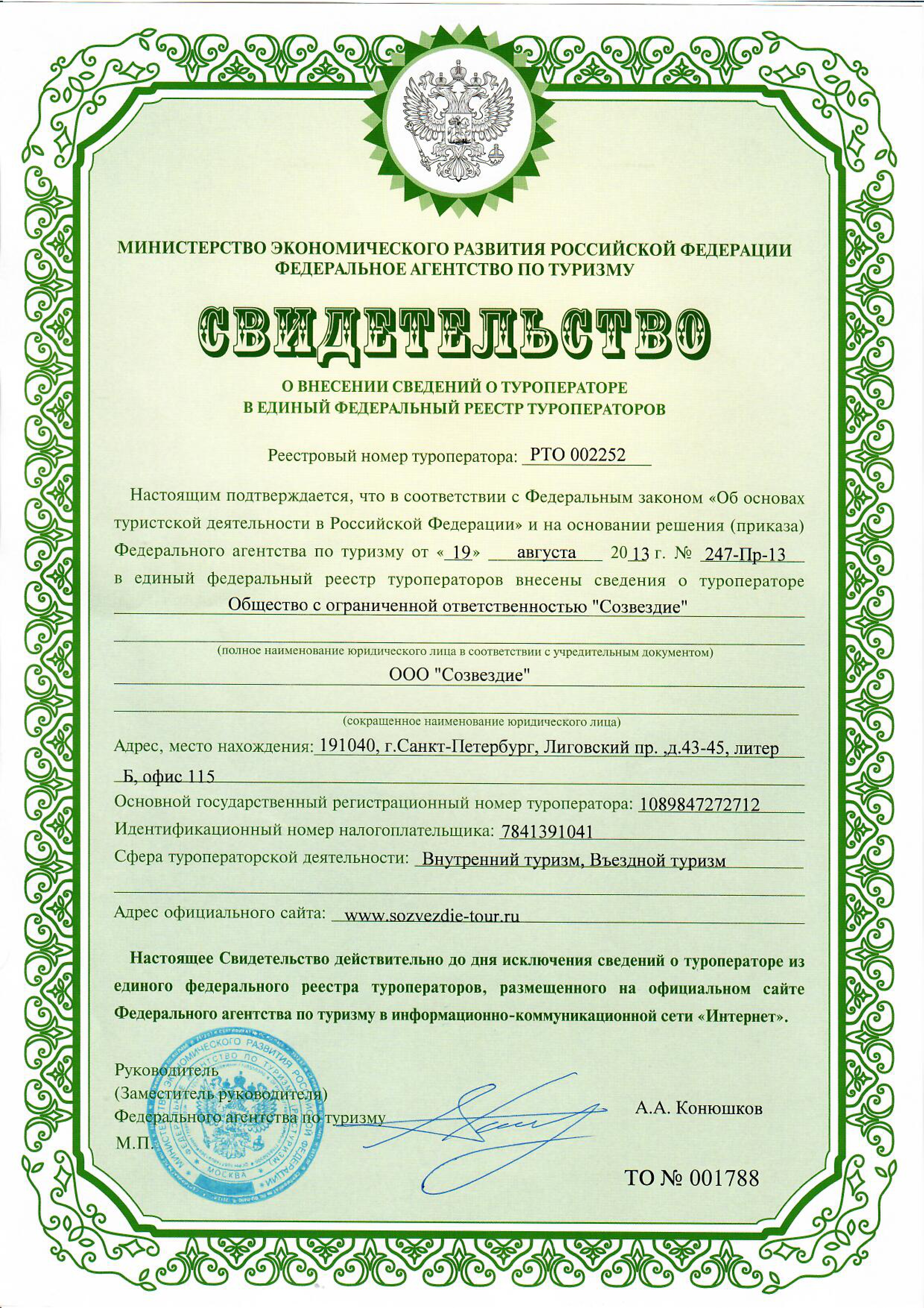 Информация на сайте Федерального агентства по туризму Российской ФедерацииОбщество с ограниченной ответственностью «Созвездие»