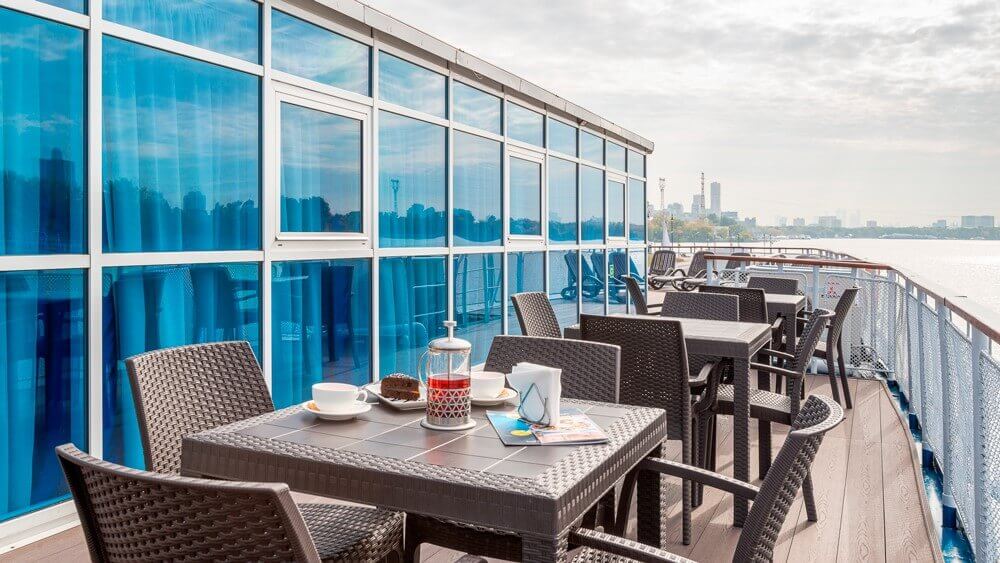 Приятной особенностью речных круизов является постоянное пребывание на свежем воздухе. На теплоходе можно забыть о повседневной жизни, насладиться красотой российской природы и умиротворяющим воздействием воды. Периодические «зеленые стоянки» с прогулками, шашлыком, спортивными играми и купанием способствуют Вашему полноценному отдыху и укреплению здоровья.