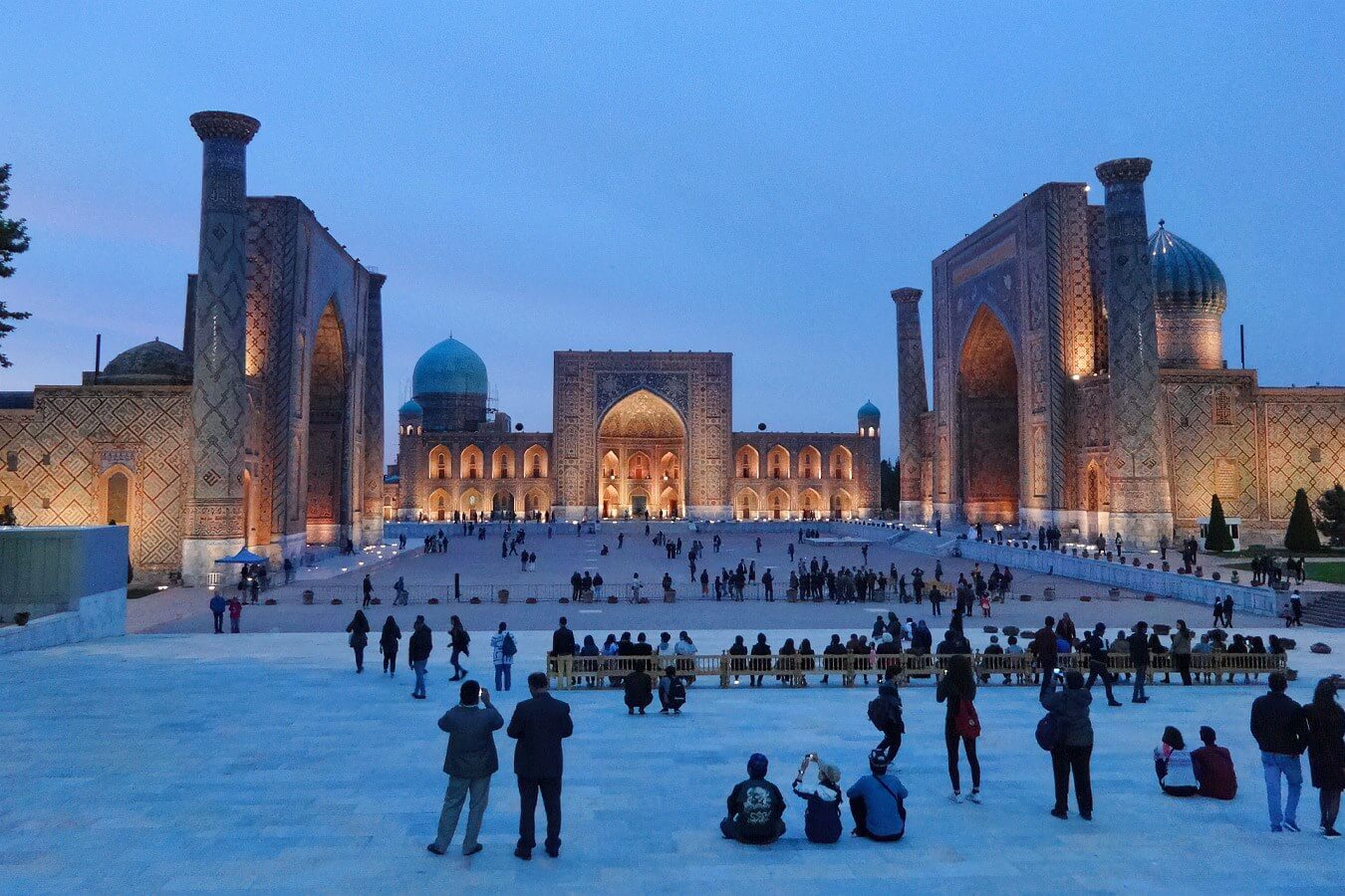 - регистан Самарканда, на который выходят фасады древних медресе Улугбека, медресе Шердор и медресе Тилля-Кари;
