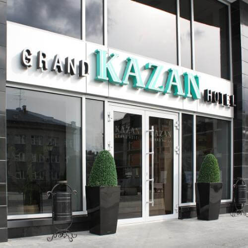 Гостиница «Гранд Отель Казань» расположена в историческом центре города, на ул. Петербуржской. Это современный 17-ти этажный гостиничный комплекс с полной инфраструктурой, комфортабельными номерами, чарующим видом на город, «Гранд Отель Казань » предлагает 215 комфортабельных номеров. Конференц – возможности отеля открывают деловые перспективы для потенциальных клиентов: конференц-залы на 250 чел., 80 чел., переговорная на 20 чел, ресторан для организации банкетов.