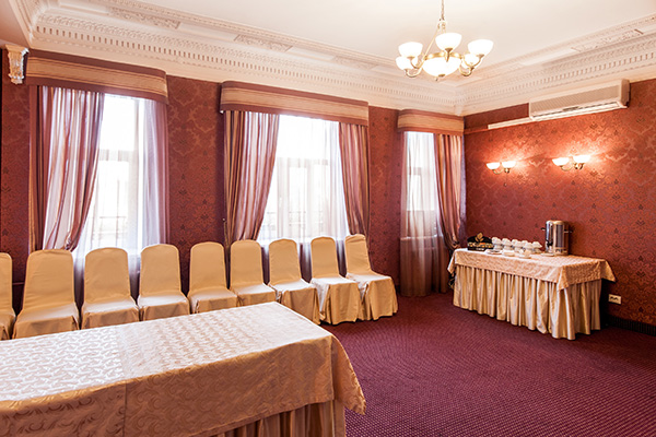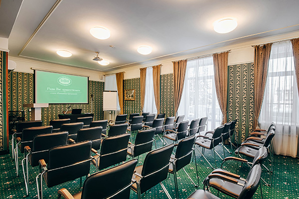 Для проведения бизнес-мероприятий оборудовано 2 конференц-зала: «Покровский» (72 кв.м. на 80 мест) на 4 этаже и «Вознесенский» (72 кв.м. на 60 мест) на 2 этаже отеля. Примерно одинаковые по вместимости, залы оформлены в разных стилевых решениях. Первый зал более сдержан в интерьере, второй выполнен в традициях начала прошлого века. Оба зала обеспечены всем необходимым – современной системой кондиционирования, проекционным, осветительным и звуковым оборудованием. Возможен заказ дополнительного оборудования и питания любого формата.