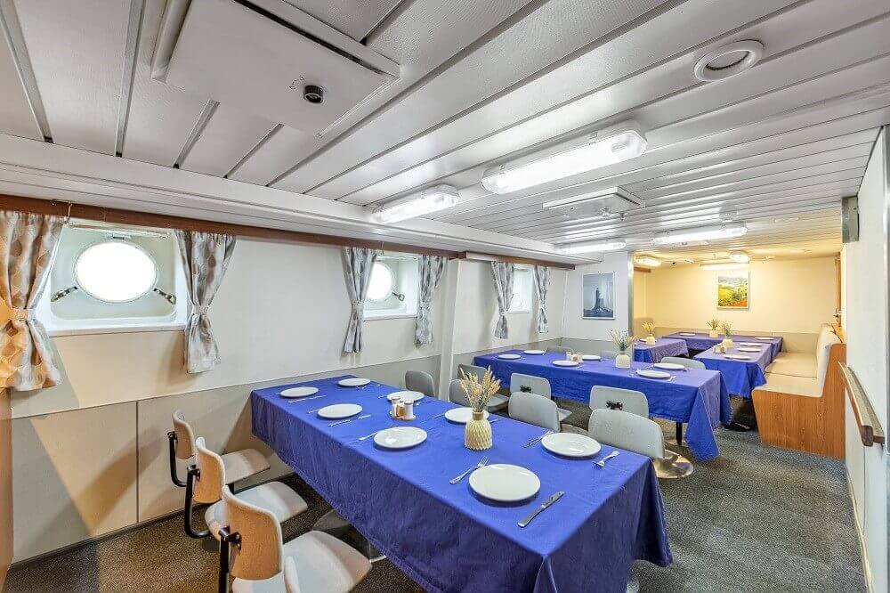 Благодаря вниманию членов команды на борту царит дружеская атмосфера, свойственная небольшой научной экспедиции. Путешествовать на судне комфортно и безопасно.