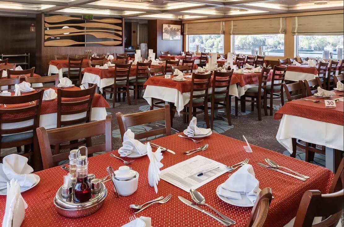 - Питание, организованное по гастрономической концепции « Родные берега ». Круизная кухня выполнена в лучших традициях побережья Поволжья, Дона, Черного моря, Енисея, Русского Севера и Восточной Сибири. В приготовлении используются свежие локальные продукты из регионов путешествия;
