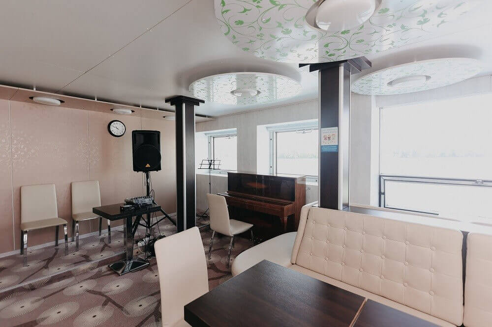 Познакомиться с теплоходом подробнее, рассмотреть интерьеры общественных зон и кают можно в нашем видео .