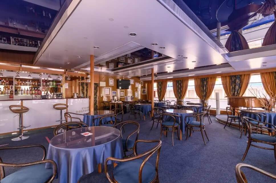 РАЗВЛЕЧЕНИЯ И УСЛУГИКаждое утро на солнечной палубе проводится утренняя зарядка, после которой в барах можно выпить бодрящий чай. Активных пользователей интернета порадует бесплатный Wi-Fi. Полностью расслабиться можно в массажном кабинете, а безупречно выглядеть помогут мастера из студии красоты. Чтобы воспоминания о путешествии остались на долгие годы, на борту есть фотобудка, где можно напечатать не только удачные снимки, но и магниты с вашим изображением. Во время путешествия на теплоходе работает арт-команда. Туристов ждут конкурсы и викторины, творческие и кулинарные мастер-классы, а также возможность самому написать собственную картину. Вечерами не позволят скучать концерты живой музыки, дискотеки и совместные просмотры фильмов.
