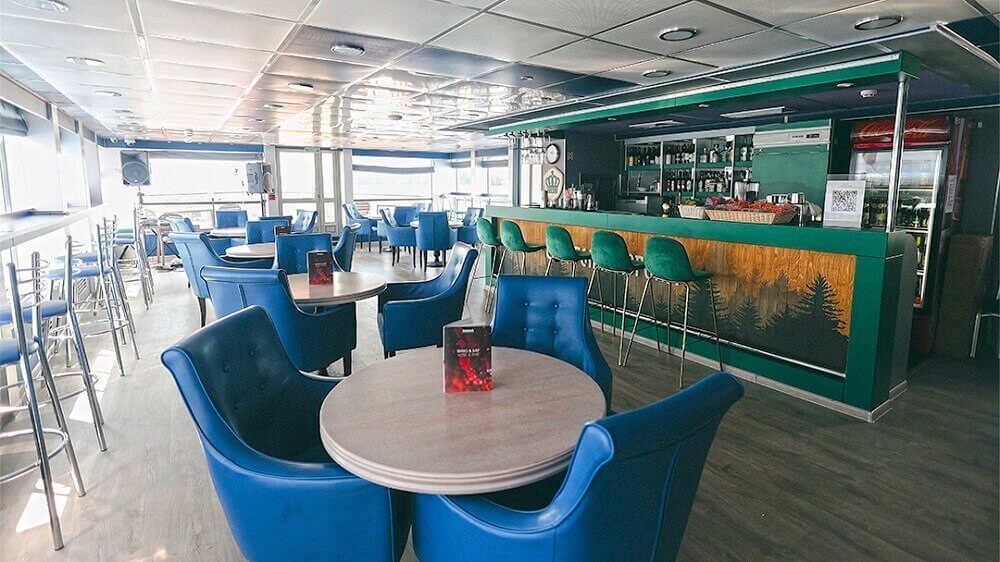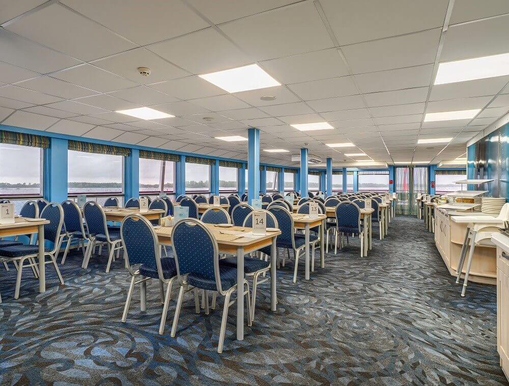 - Услуги, включённые в стоимость: проживание в каюте, трёхразовое питание, экскурсии в городах стоянок и развлекательная программа на борту;