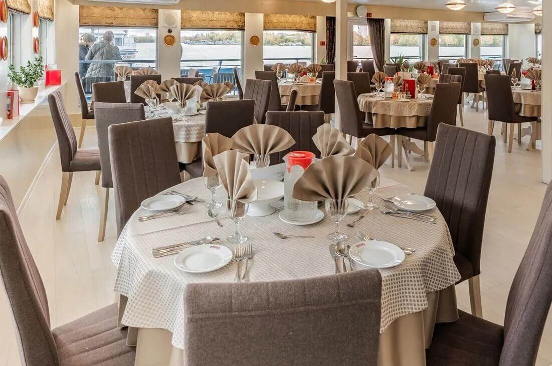 - Выбор системы питания: завтрак, полупансион (завтрак + ужин) или полный пансион (завтрак + обед + ужин). Подробная информация в разделе «Питание в круизе».