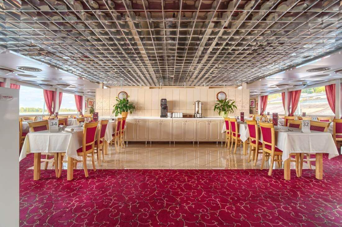 - Питание, организованное по гастрономической концепции « Родные берега ». Круизная кухня выполнена в лучших традициях побережья Поволжья, Дона, Черного моря, Енисея, Русского Севера и Восточной Сибири. В приготовлении используются свежие локальные продукты из регионов путешествия;