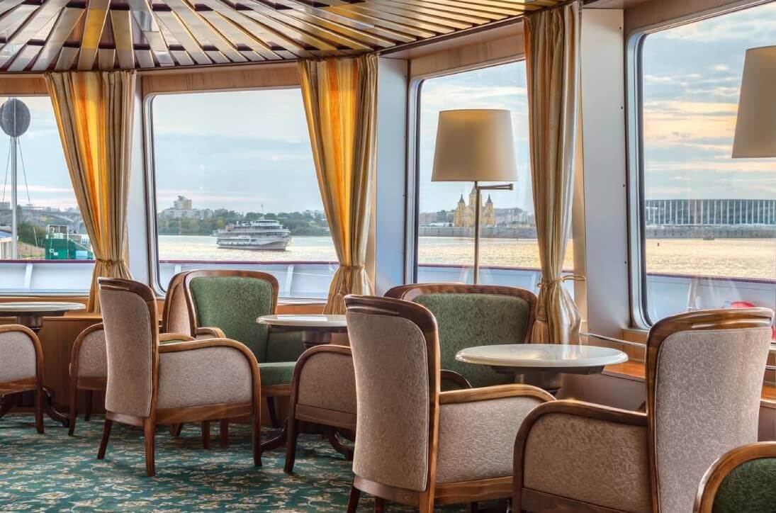 Вас ждет премиальный комфорт в каждой каюте: санузел с душевой, кондиционер, холодильник, сейф, телевизор и фен, бутилированная вода с ежедневным пополнением, гигиенический набор, а также капсульная кофемашина и халаты в каютах класса «Люкс» и «Полулюкс». Помимо обширного каютного фонда, теплоход «Лев Толстой» предлагает большое количество уютных мест для отдыха. В атмосферных барах и гостеприимных ресторанах на теплоходе вас ждёт тёплый приём, расслабляющая обстановка и потрясающие панорамные виды.