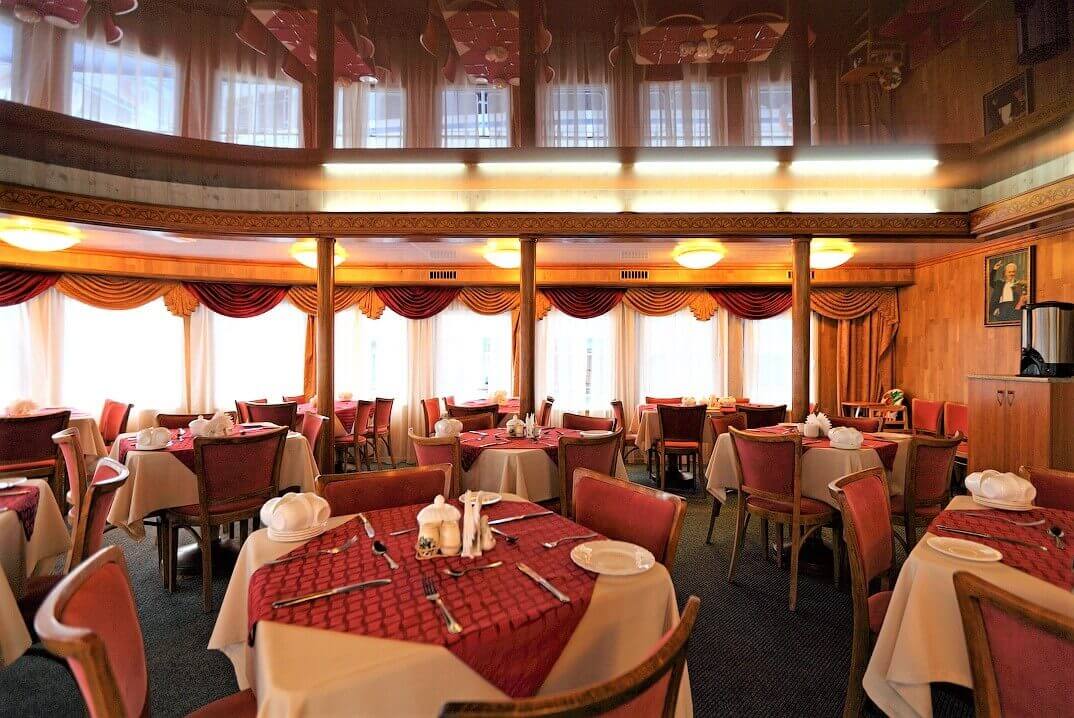 Питание организовано в две смены в двух ресторанах теплохода. Специальное диетическое и вегетарианское питание на борту не предусмотрено.