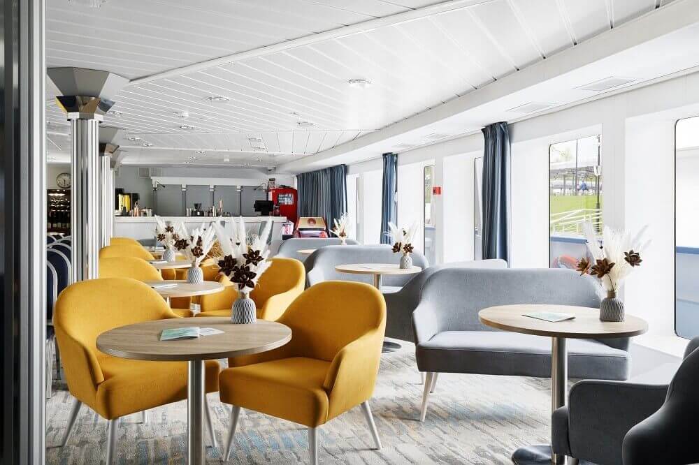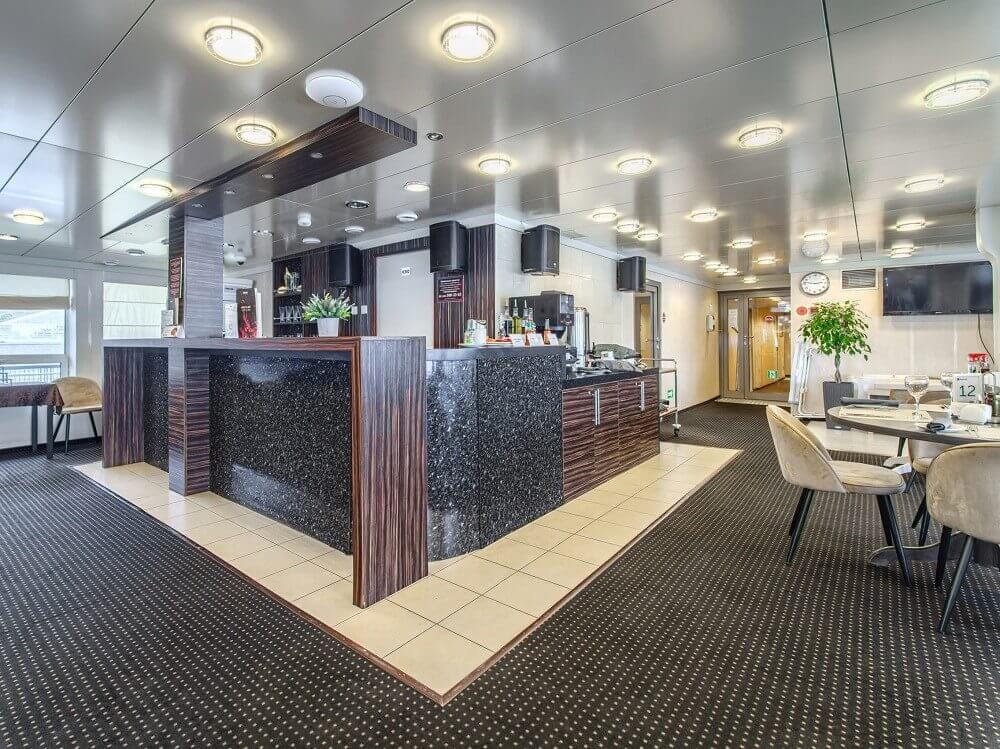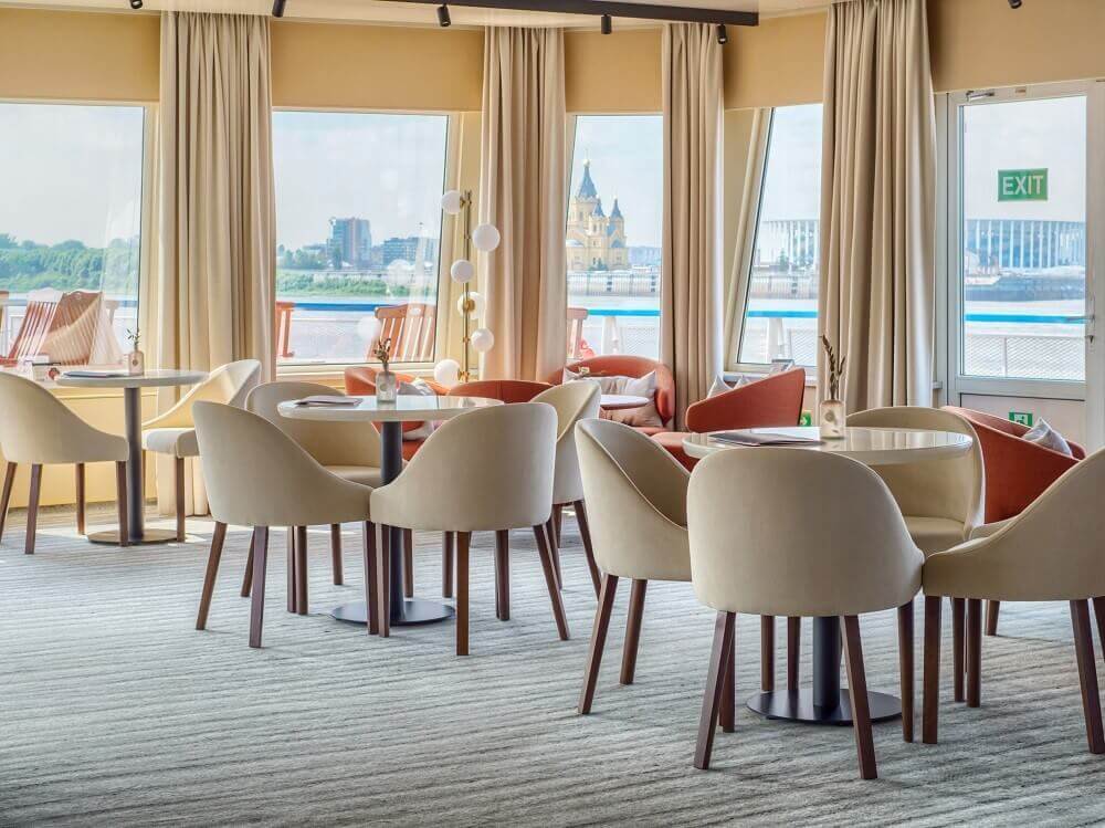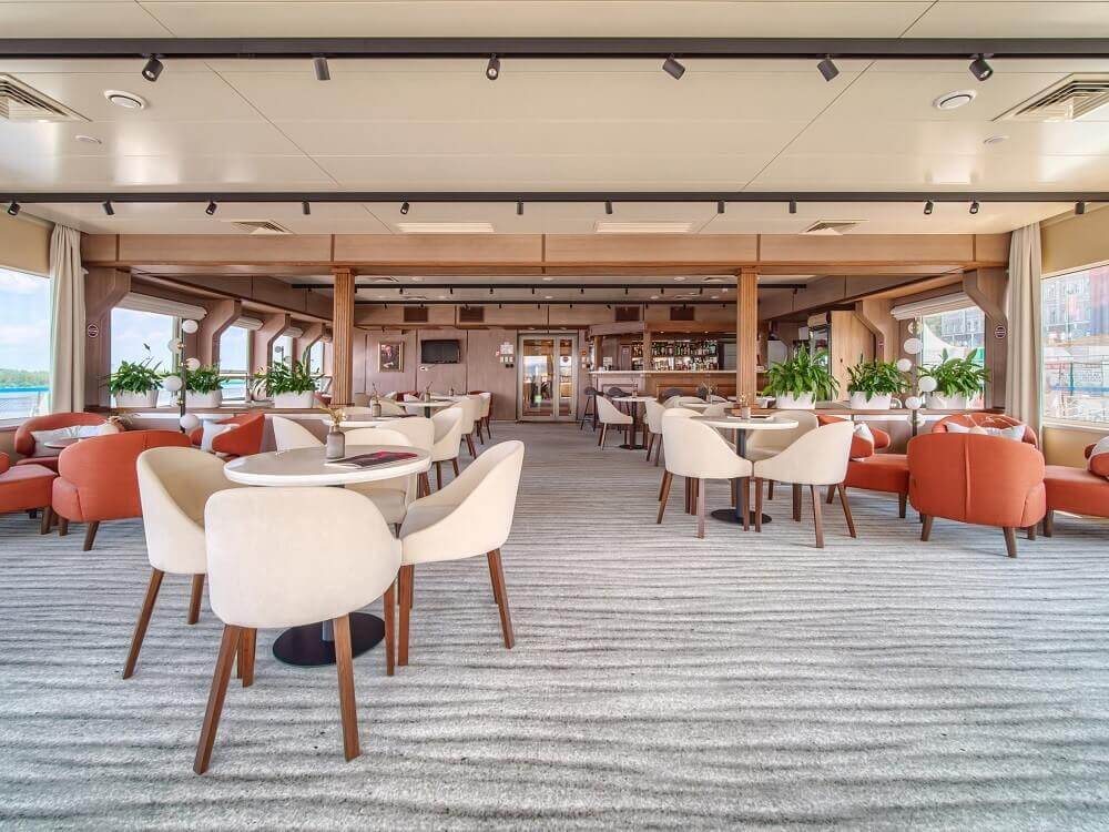 Вас ждет премиальный комфорт в каждой каюте: санузел с душевой, кондиционер, холодильник, сейф, телевизор и фен, бутилированная вода с ежедневным пополнением, гигиенический набор, а также капсульная кофемашина и халаты в каютах класса «Люкс» и «Полулюкс А». Помимо обширного каютного фонда, теплоход «Мстислав Ростропович» предлагает большое количество уютных мест для отдыха. В атмосферных барах и гостеприимных ресторанах на теплоходе вас ждёт тёплый приём, расслабляющая обстановка и потрясающие панорамные виды.