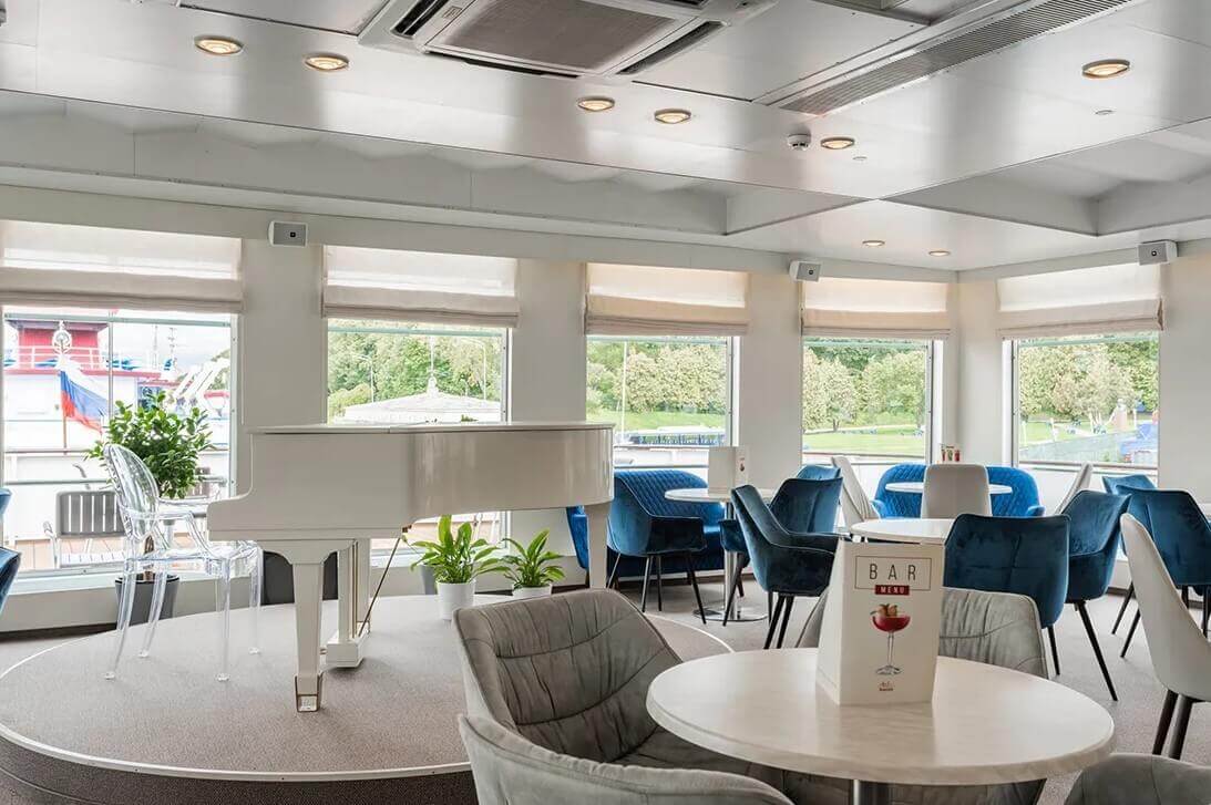 - Солнечная палуба, где можно наслаждаться неспешным течением реки и сменяющимися пейзажами, подышать свежим воздухом.
