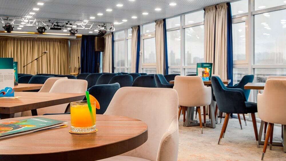 На теплоходе вас ждет не только разнообразный, но и полезный отдых. На палубе стоят тренажеры, на которых вы можете позаниматься в любое время. А в ресторане и лаундж-баре вам предложат фиточай и кислородный коктейль.
