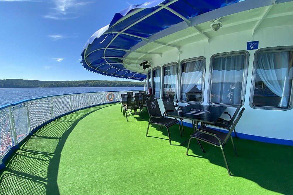 РАЗВЛЕЧЕНИЯ И УСЛУГИАрт-бригада подготовит развлекательную программу на любой вкус: разнообразные мастер-классы и концерты, вечера живой музыки, викторины и конкурсы. Шлюпочная палуба оборудована шезлонгами, в солнечную погоду там приятно загорать и проводить время.