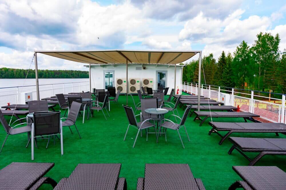 Также на борту есть лаунж-бар с живой музыкой, где Вы сможете порадовать себя вкусными напитками и закусками.