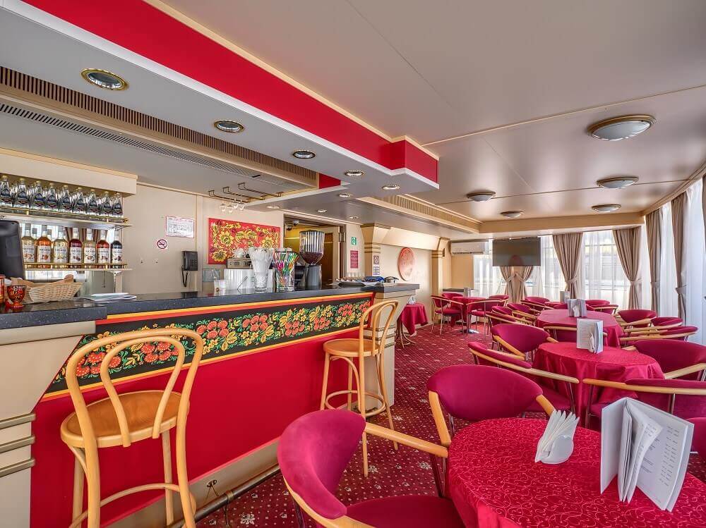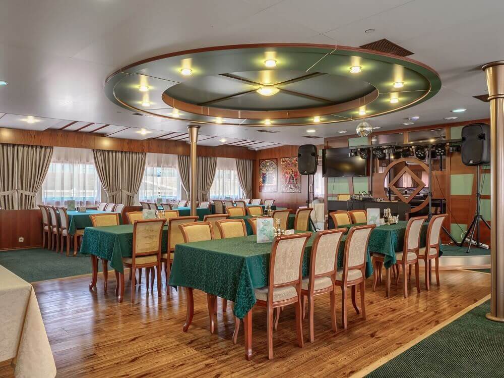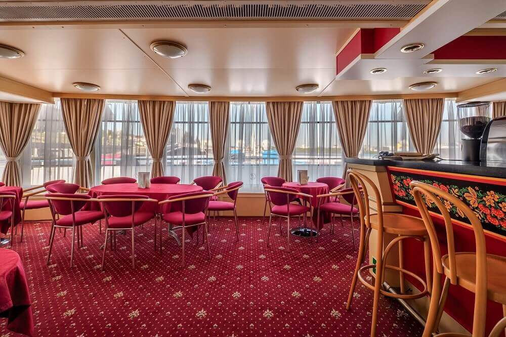 Вас ждут комфортабельные каюты, оснащённые санузлом с душевой, кондиционер, холодильник, а также телевизор и фен (в каютах класса «Люкс»). Помимо обширного каютного фонда, теплоход «Русь» предлагает большое количество уютных мест для отдыха. В атмосферных барах и гостеприимных ресторанах на теплоходе вас ждёт тёплый приём, расслабляющая обстановка и потрясающие панорамные виды.