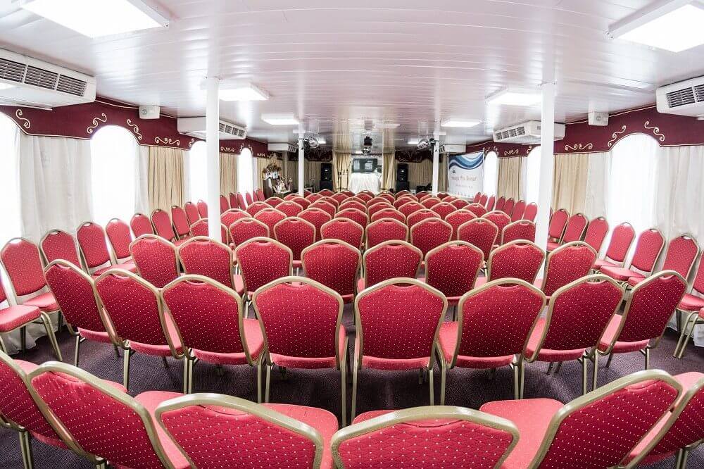 РАЗМЕЩЕНИЕНа теплоходе с максимальным комфортом можно совершать как непродолжительные, так и длительные круизы. В каждой каюте предусмотрены система кондиционирования, санузел с душем, телевизор со спутниковым телевидением. В каютах на средней и шлюпочной палубах есть мини-холодильники. В связи с санитарными требованиями в современных условиях, на теплоходе установлена система «Фанкойл», которая работает в автоматическом режиме, отслеживает микроклимат и постоянную подачу свежего воздуха по всем помещениям и каютам. Кроме этого функционирует приточная и вытяжная вентиляция, как дополнение в выше изложенной системе. Во всех каютах есть регуляторы, как для системы кондиционирования, так и для системы вентиляции.