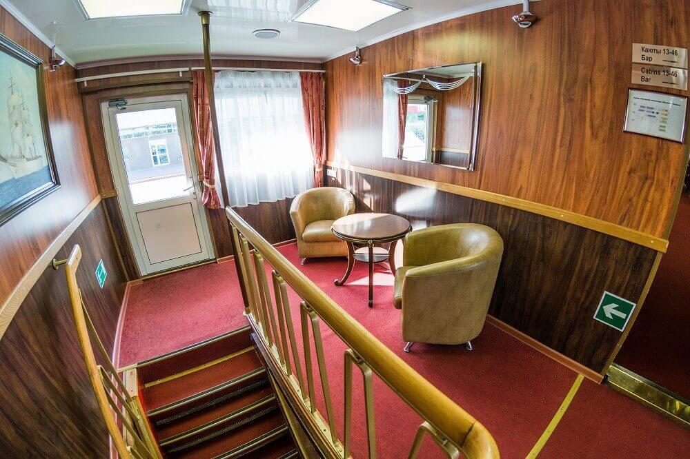 Теплоход полюбился туристам своими интересными маршрутами и непередаваемой атмосферой домашнего уюта. Опытный и вежливый персонал окружает гостей заботой и вниманием с первых минут их пребывания на борту.