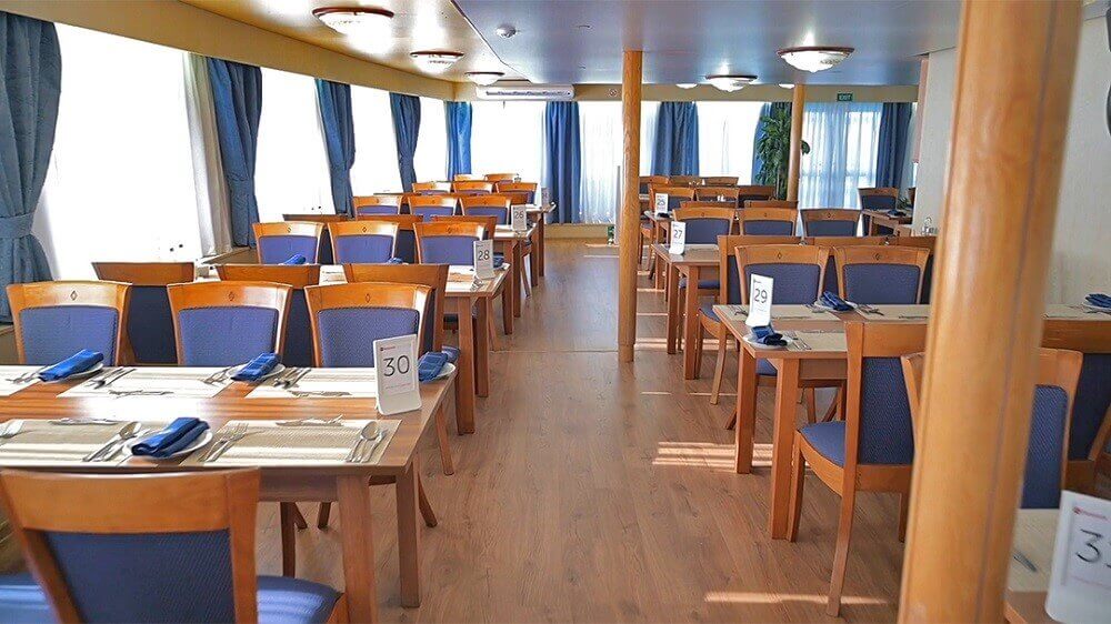трехразовое питание: завтрак, обед и ужин – по заказному меню (в рейсах менее 5-ти дней – накрытие без выбора)