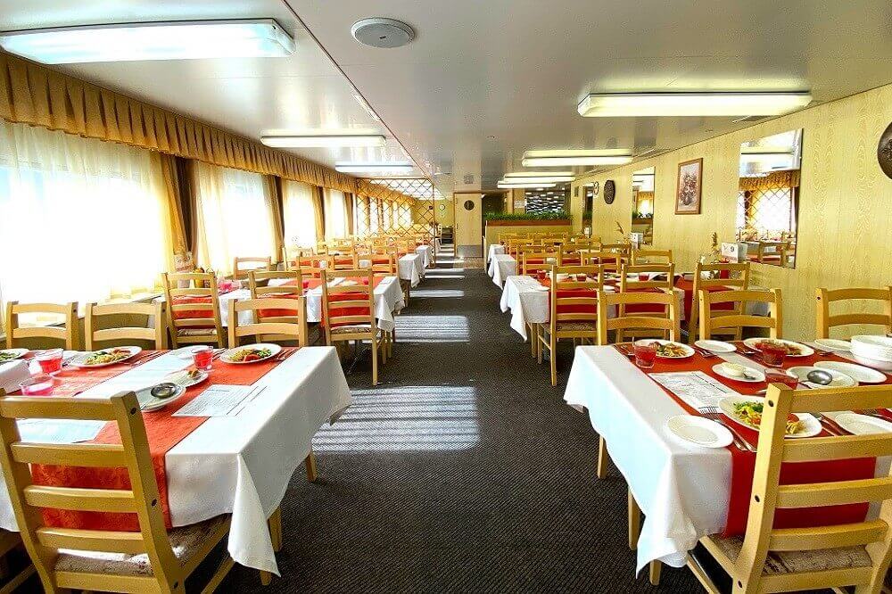 трехразовое питание: завтрак, обед и ужин – по заказному меню (в круизах до 3-х дней – комплексное питание)