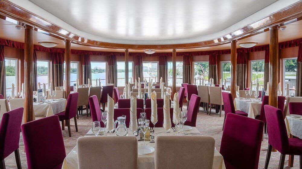 В каюте: односпальная кровать, ванная комната (раковина, душ, туалет), шкаф, стол, полка, телевизор, радио, кондиционер, холодильник, розетки 220V, туалетные принадлежности (шампунь, мыло, гель для душа), обзорное окно.