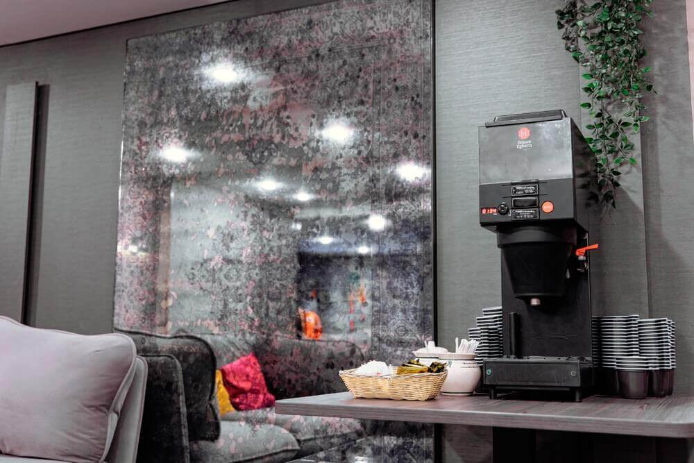 - Кофе-станция — общедоступный стол с горячими напитками. Время работы: круглосуточно;