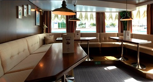• Ужин — заказная система питания (выбор блюд со 2-го дня круиза). Включённые напитки (без ограничения): вода, чай, кофе, кисломолочный напиток (1 стакан 200 мл. на ужин по запросу гостя).