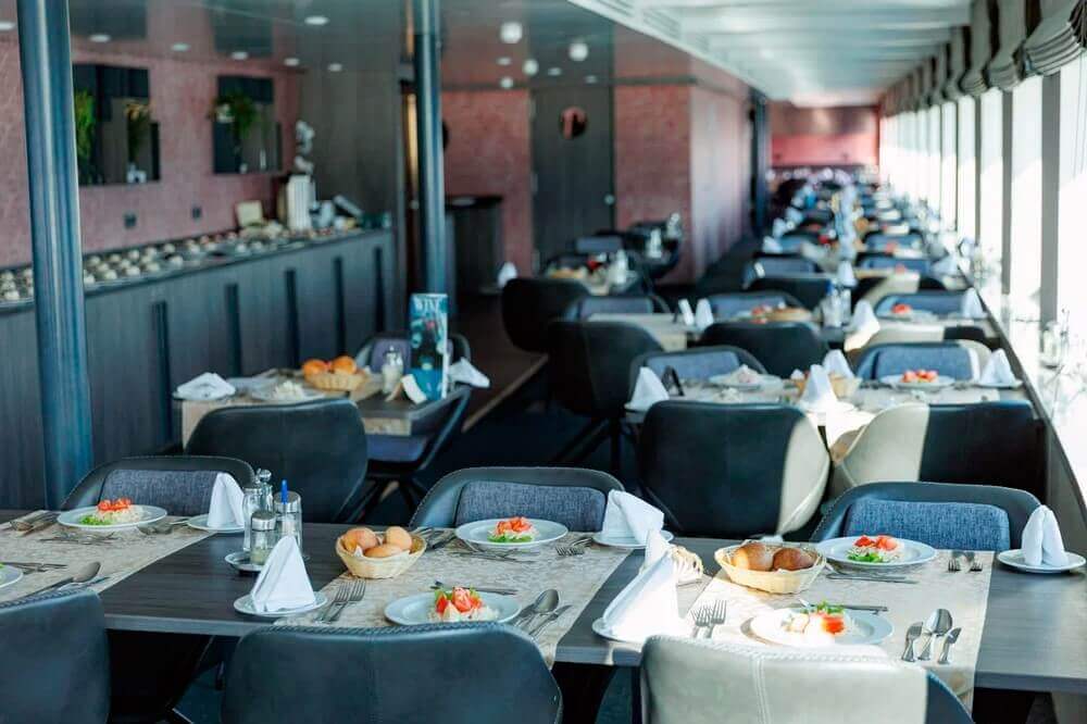 • Обед – заказная система питания (выбор блюд со 2-го дня круиза), фиксированная рассадка. Включённые напитки (без ограничения): вода, чай, кофе, морс.