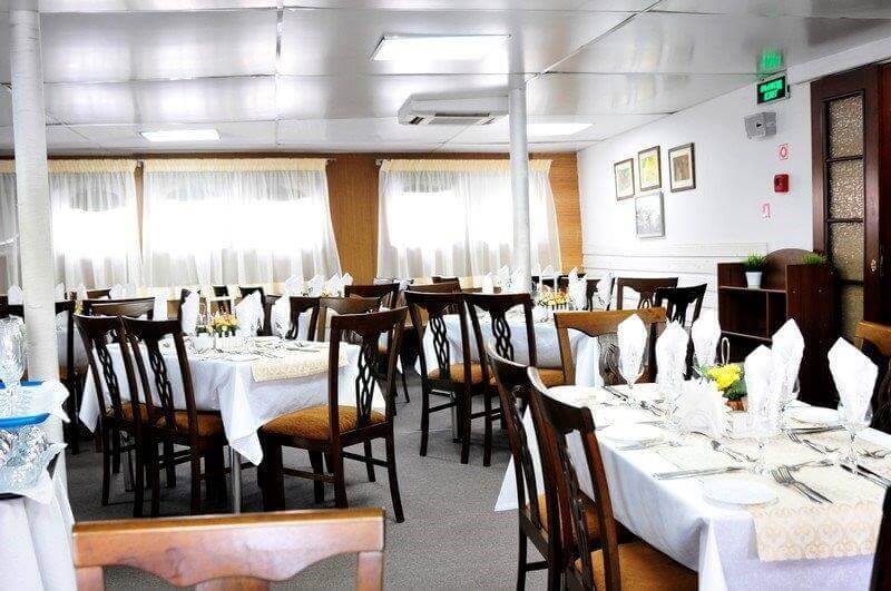 - Обед — заказная система питания (выбор блюд со 2-го дня круиза), фиксированная рассадка. Включённые напитки (без ограничения): вода, чай, кофе, морс;