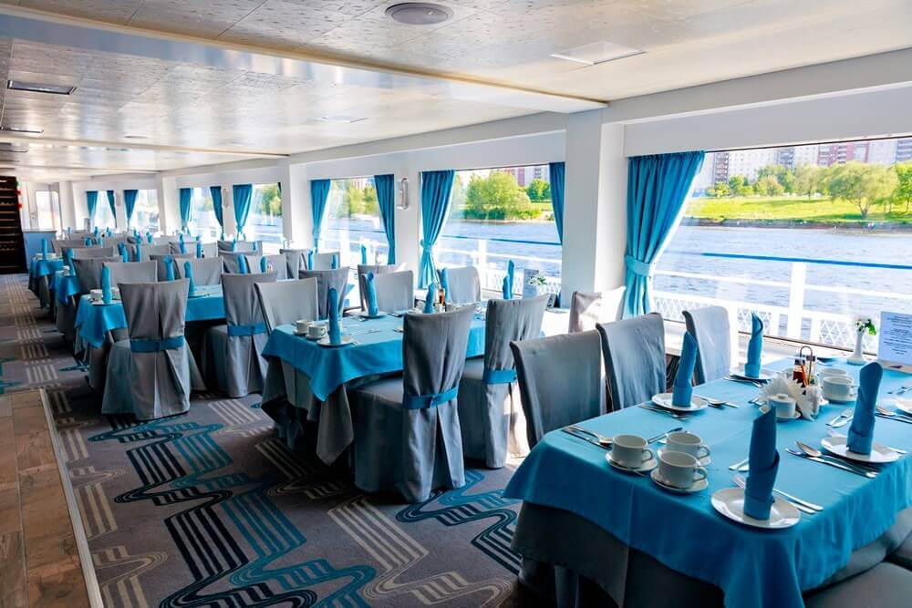 - Обед – заказная система питания (выбор блюд со 2-го дня круиза), фиксированная рассадка. Включённые напитки (без ограничения): вода, чай, кофе, морс.