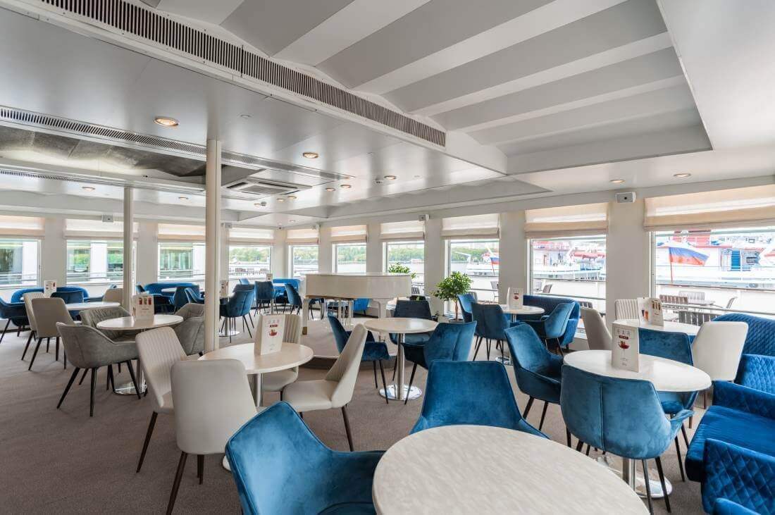 - Завтрак — шведский стол или заказная система с элементами шведского стола, фиксированная рассадка. Включённые напитки (без ограничения): вода, сок, чай, кофе. В рейсах до 4-х дней при ранней высадке в день прибытия завтрак континентальный;