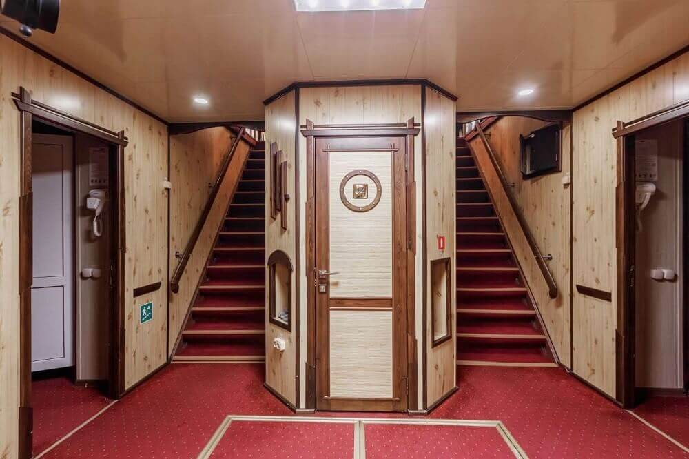 - Каюты класса «Люкс»: бутилированная вода в каюте (ежедневное пополнение) — 1 бутылка (0,5 л.) на человека в день;