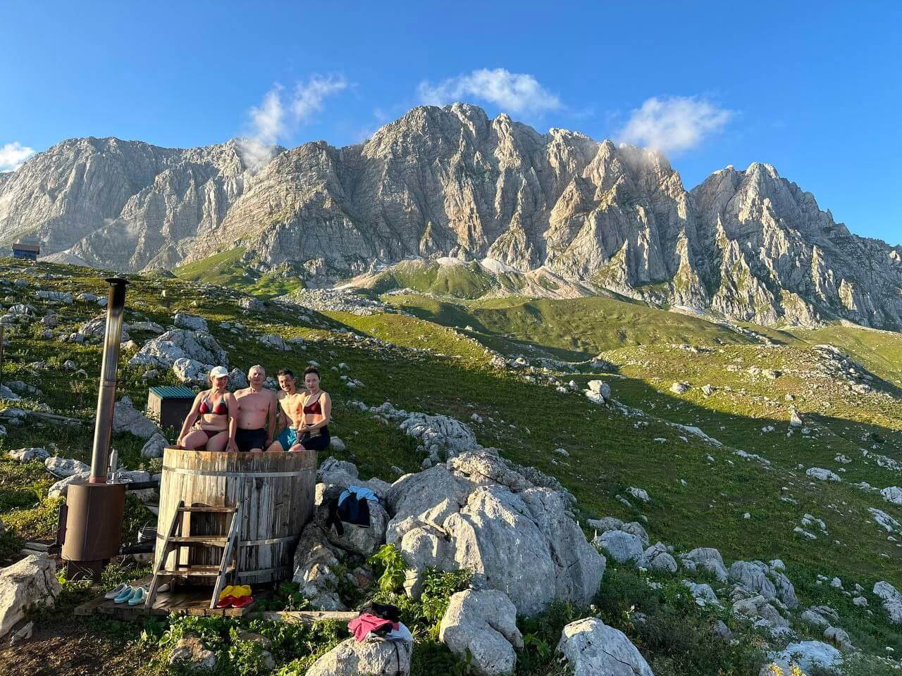 Для желающих: банный чан на высоте 850 м, шашлыки (за доп. плату).