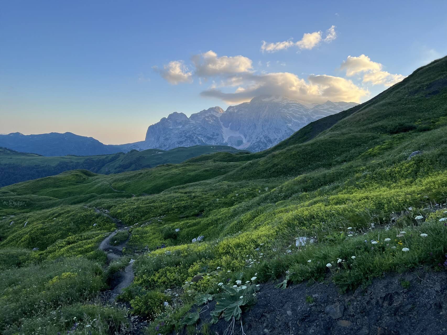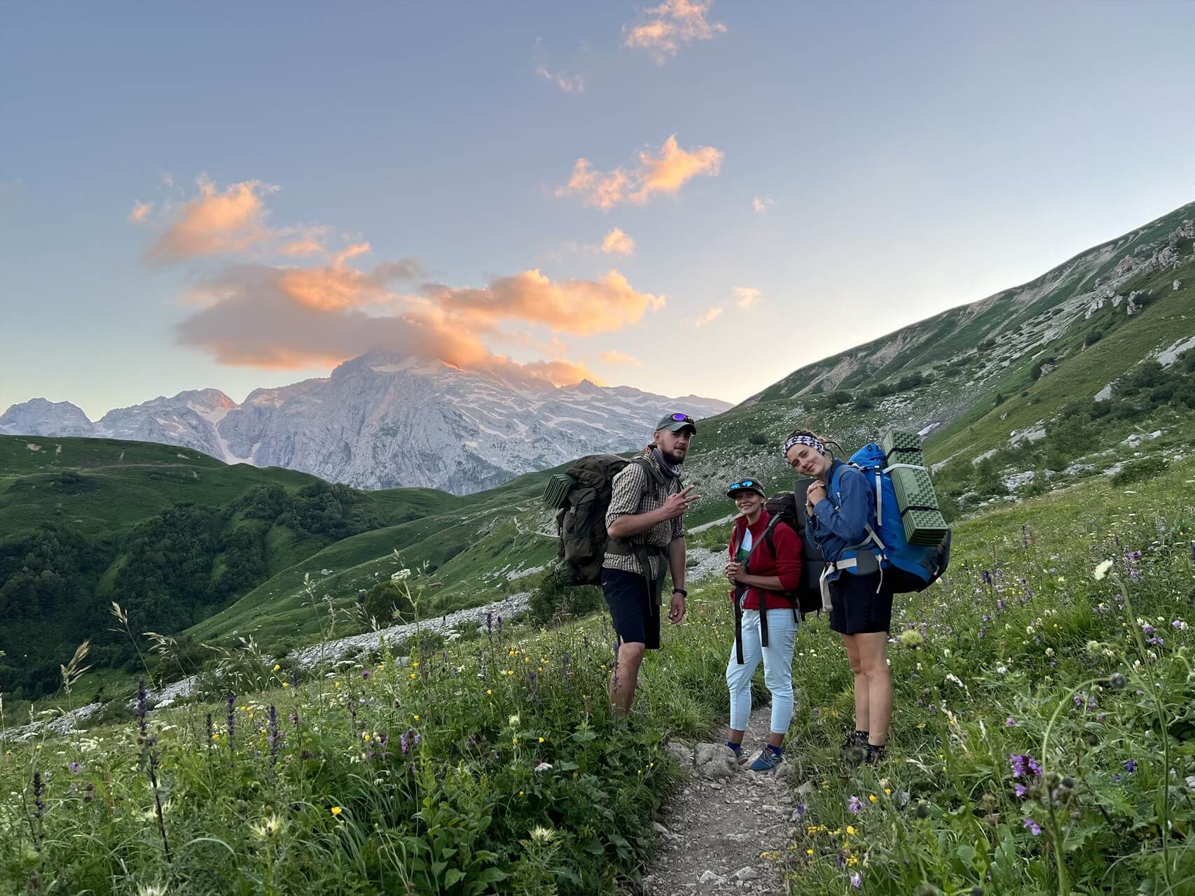Маршрут по территории Кавказского биосферного заповедника, в зоне альпийских лугов.