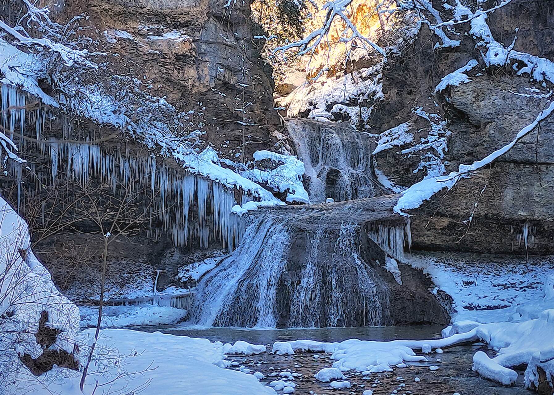 Вас ждет прогулка по ущелью р. Руфабго, древнему тектоническому разлому с крутыми склонами, каменными террасами, гротами и отвесными скальными коридорами высотой до 150 м. Проходим каменные лабиринты, водопады, посещаем исторические объекты – «зиндан» средневековой крепости, древний жертвенник и менгиры. Зимой вместо водопадов – ледовые панцири, а когда идет снег – ущелье становится неповторимо чарующим. По необходимости применяем спец. снаряжение.