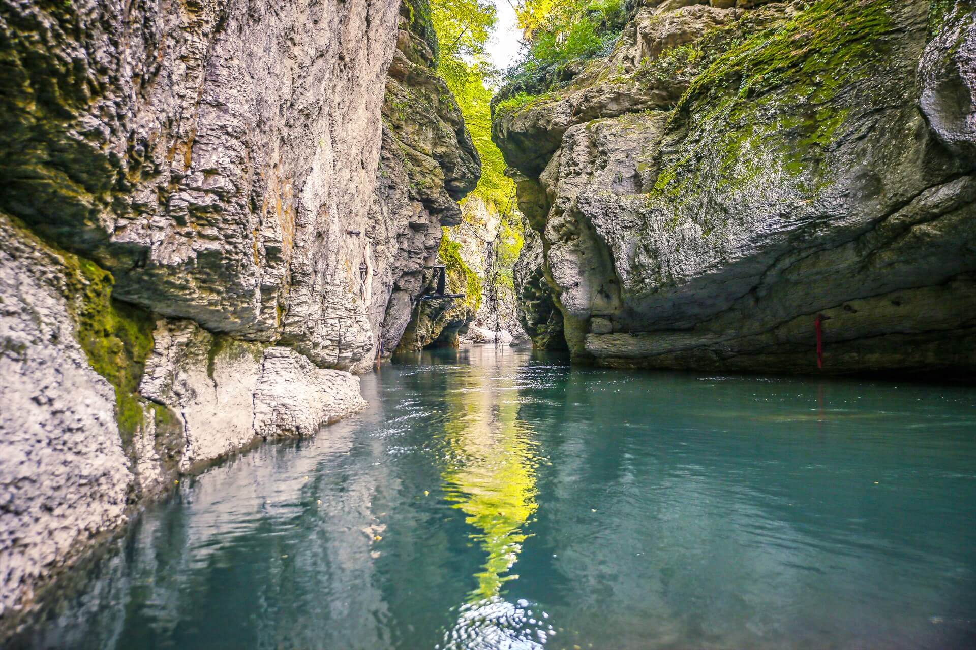 Экскурсия не займет много времени, но даст представление о том, что такое каньон горной реки. Здесь на отвесных, почти совсем голых известняковых стенах, виднеются многочисленные ниши, вымытые стремительным потоком. Очень впечатляет!