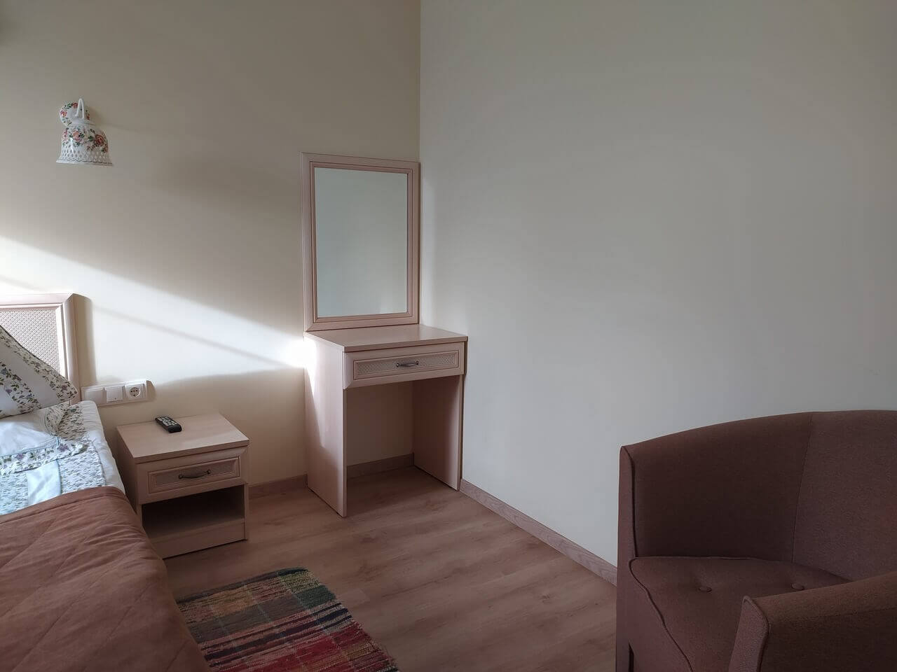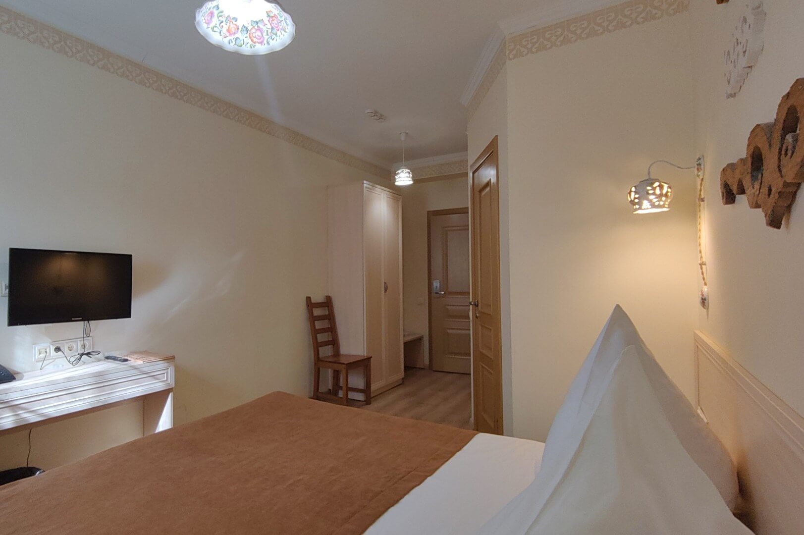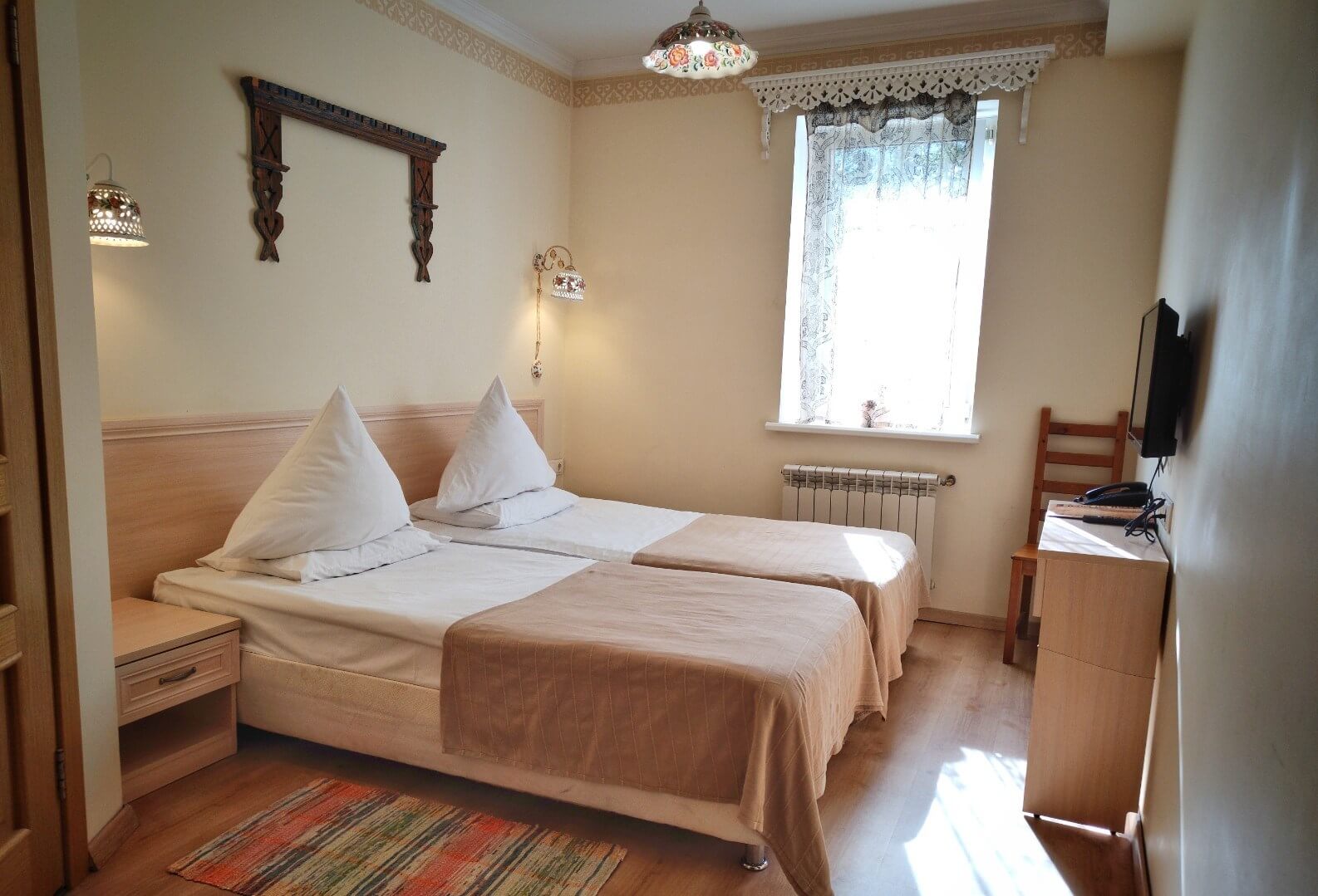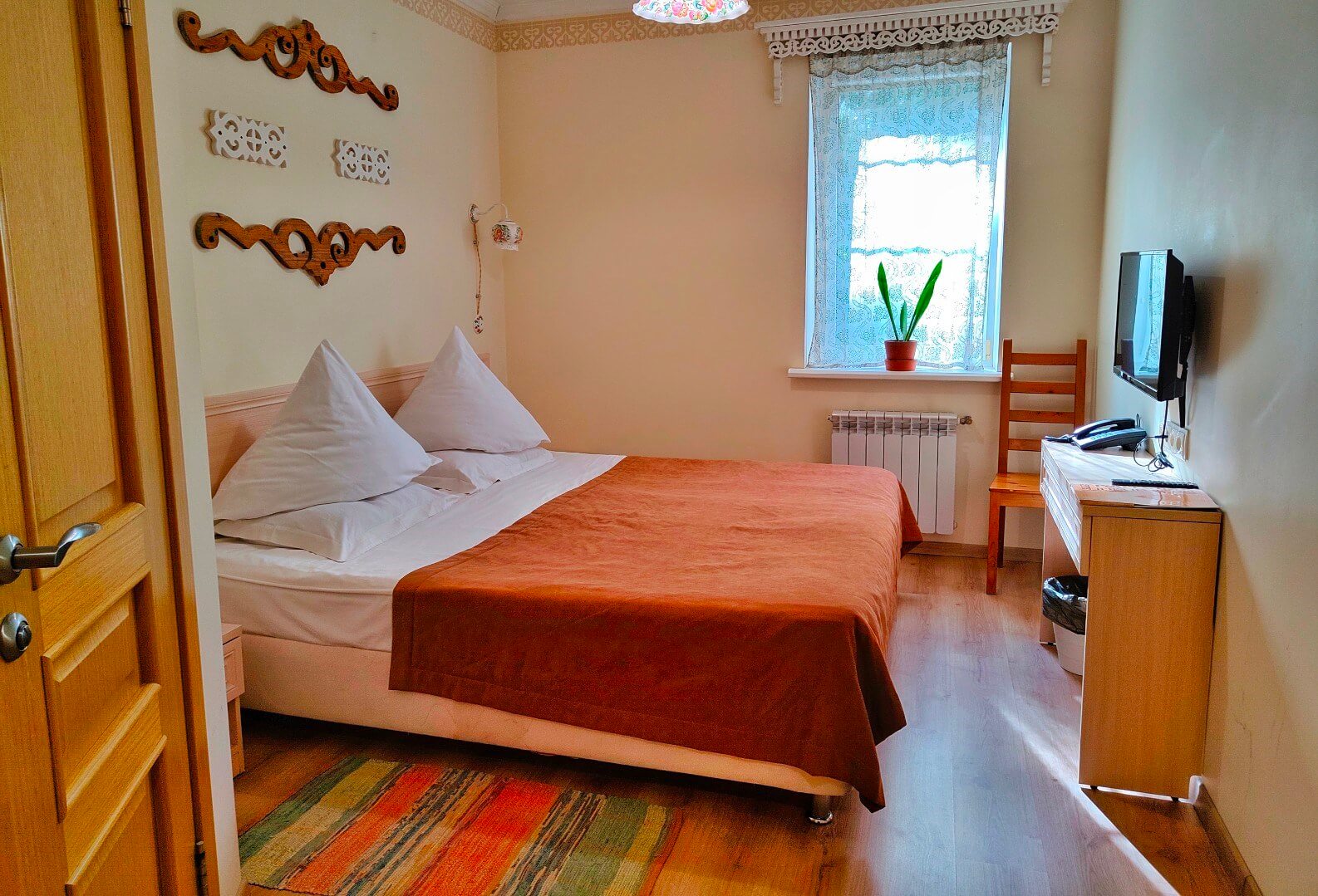 Стандартный 2-местный номер (доп. место раскладушка)Осталось 2 номераПлощадь: 19 кв. м, односпальная кровать или 2 раздельных односпальных кровати, ванная комната с душевой кабиной, телефон, ЖК телевизор, набор для душа, тапочки, полотенца, Wi-fi в номере.