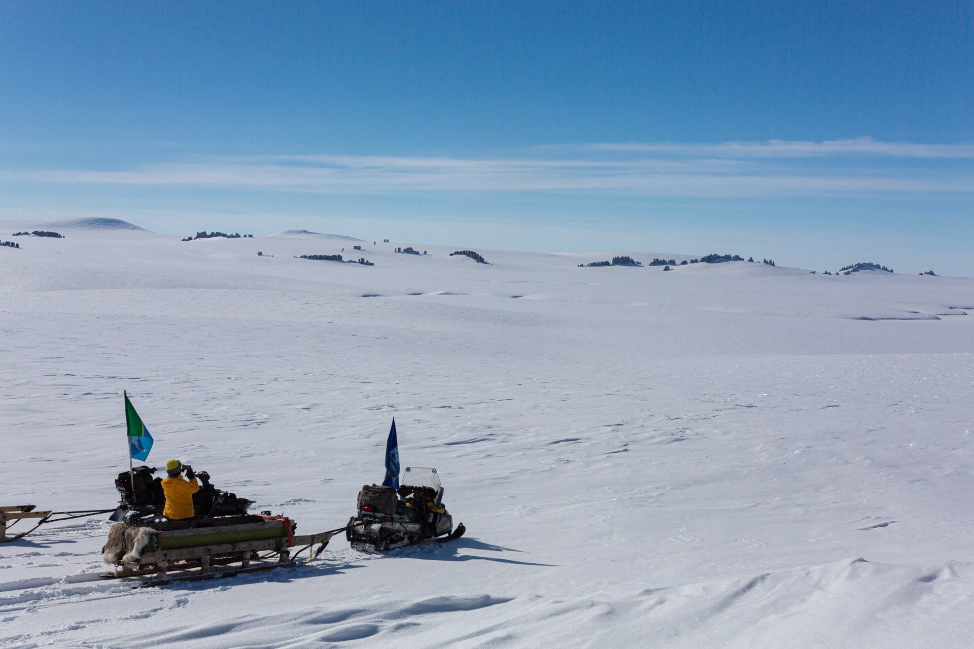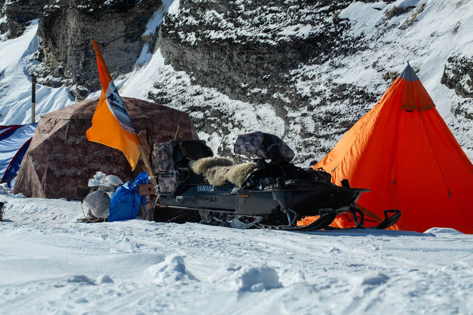 Передвижение осуществляется на снегоходах.