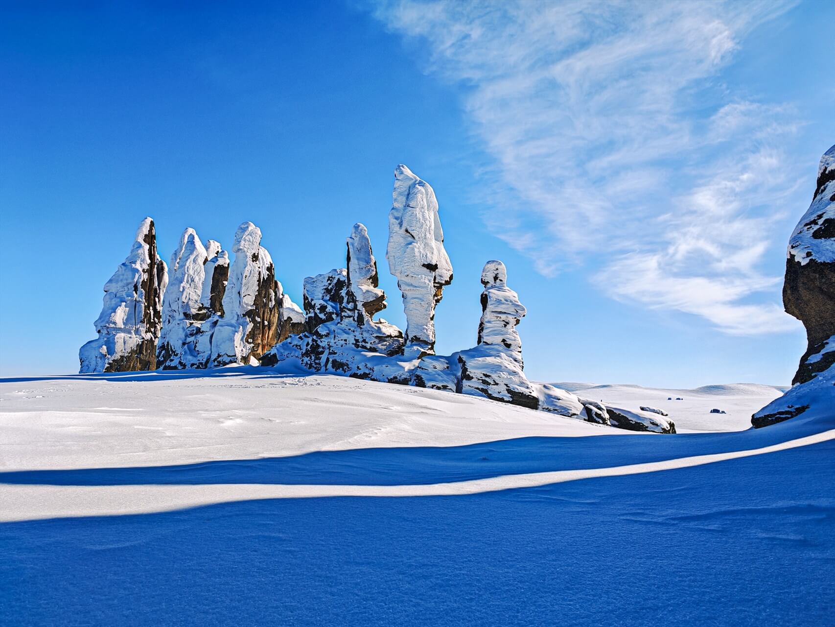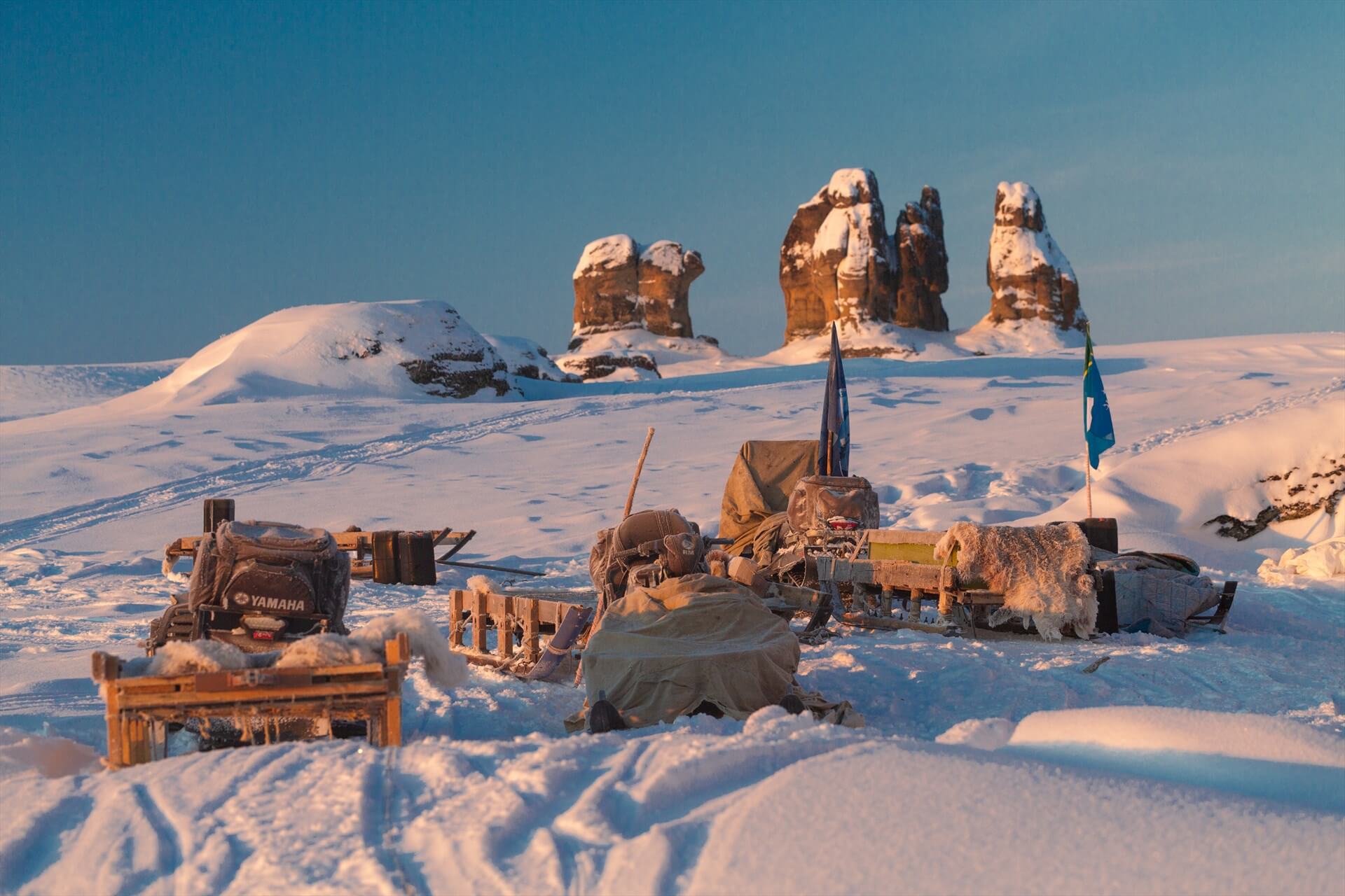 Переезд на снегоходах до Каменных Людей Сундуруна (время в пути до Каменных Людей 10 часов).