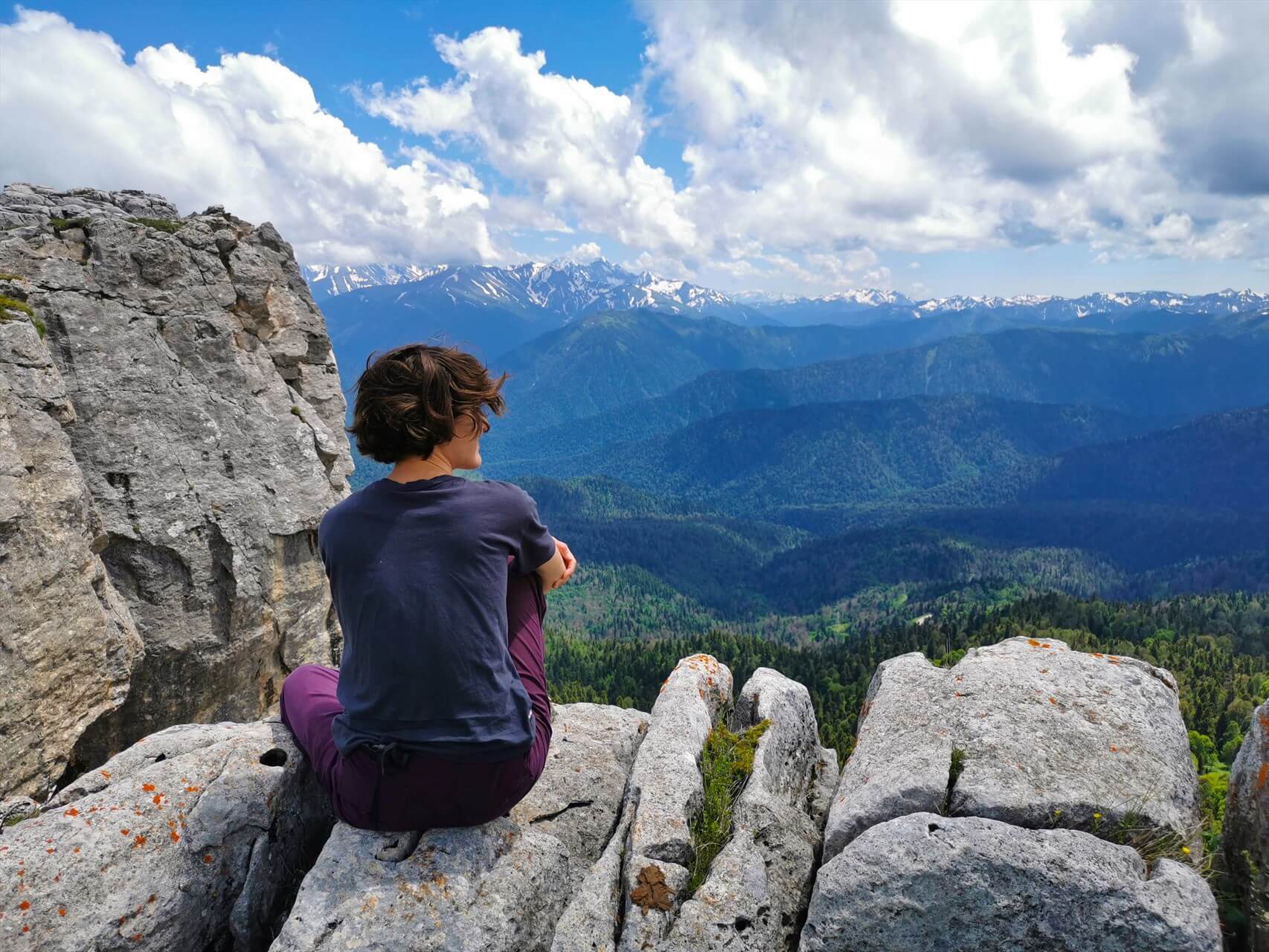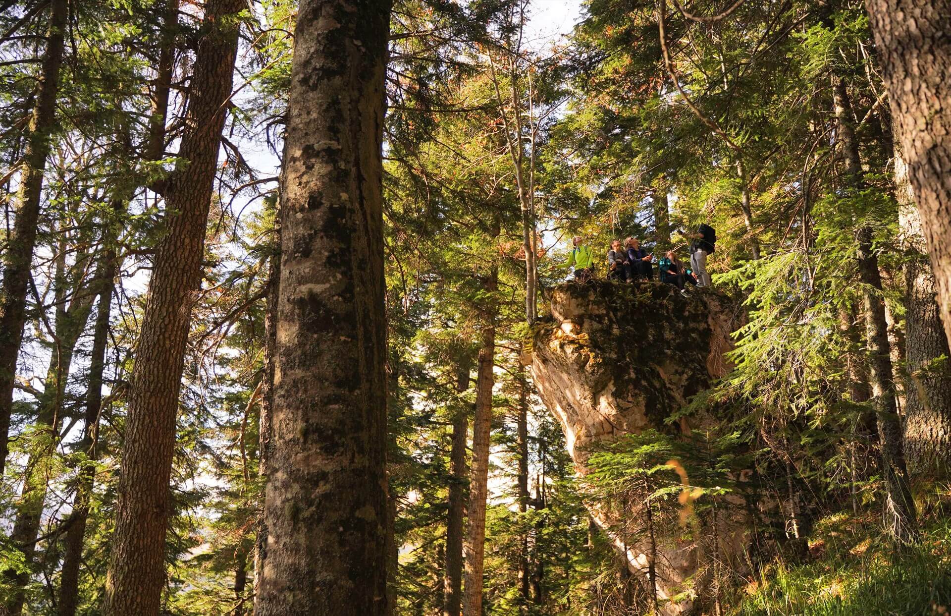 По лесной тропе, среди высоченных пихт и сосен, над Курджипским ущельем забираемся во все интересные места – гроты, разломы, покрытые коврами мха. Здесь настоящая тайга – дикая и красивая!