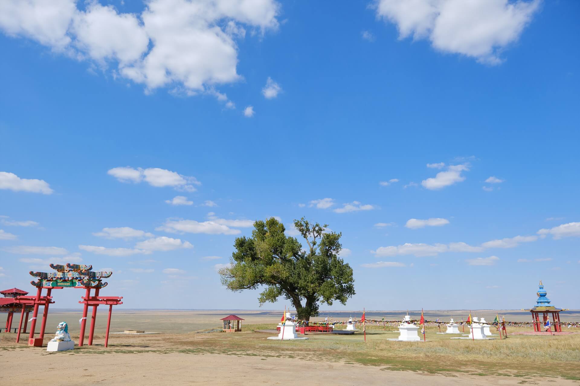 Этот тополь у калмыков-буддистов считается священным деревом. Его окружают восемь буддийских ступ. Ежегодно здесь совершают большой молебен монахи из Центрального хурула. Здесь установлена одна из 10-ти в мире Ступ Калачакры – Ступа Калачакры Зеленой Тары, единственная в России и в Европе. Согласно легенде, этот тополь посадил в начале XX века буддийский монах. Семена он привёз из Тибета, куда совершил паломничество. Монах сложил семена тополя в дорожный посох и закопал на самой высокой точке холма в бескрайней степи, недалеко от источников с лечебной водой. В степях Калмыкии трудно найти тенистые места. Одинокий тополь превратился в исполинское дерево с раскидистыми ветвями, отбрасывающими густую тень. Все, кто совершал долгие переходы, останавливались здесь передохнуть, читали мантры, обращались к тополю с просьбами. И желания исполнялись. Так «Одинокий тополь» стал почитаться в Калмыкии как святыня. «Одинокий тополь» победитель конкурса «Главное дерево страны – Российское дерево года» 2019 г. Победитель этого года – тополь из Калмыкии, 103 года по данным ЦДЭ на 2019 г. (№390 в реестре старовозрастных деревьев России). Тополь занял третье место в конкурсе «Европейское дерево года 2019».