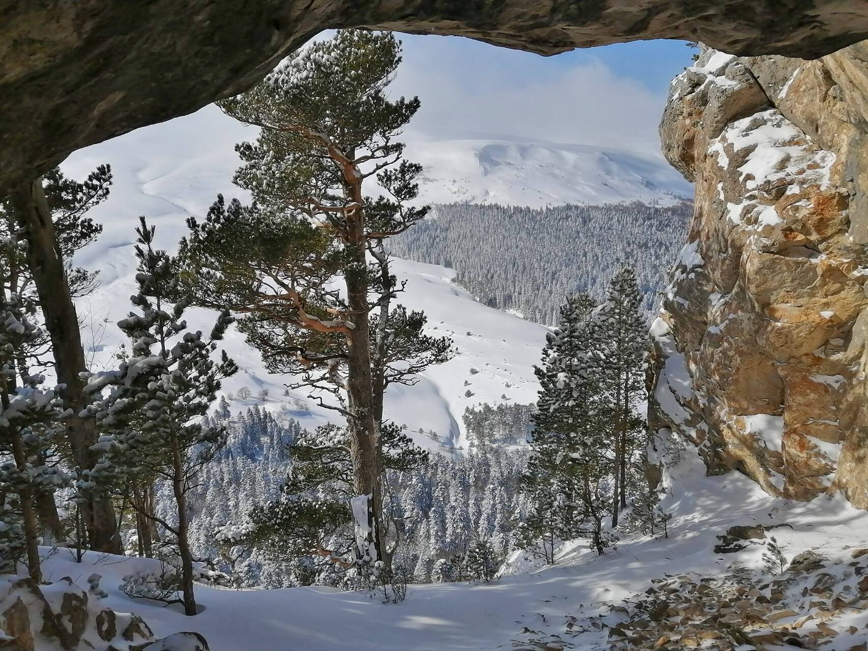 Добравшись до ущелья Желоб (1700 м над уровнем моря), вы подниметесь на смотровую точку. Отсюда открываются роскошные панорамные виды на плато, скальные сбросы высотой до 100 метров – от всего этого захватывает дух. Дальше вам предстоит прогулка в снегоступах по заснеженному дикому лесу над Курджипским урочищем. Маршрут кольцевой, поэтому вы успеете забраться в самые интересные места.