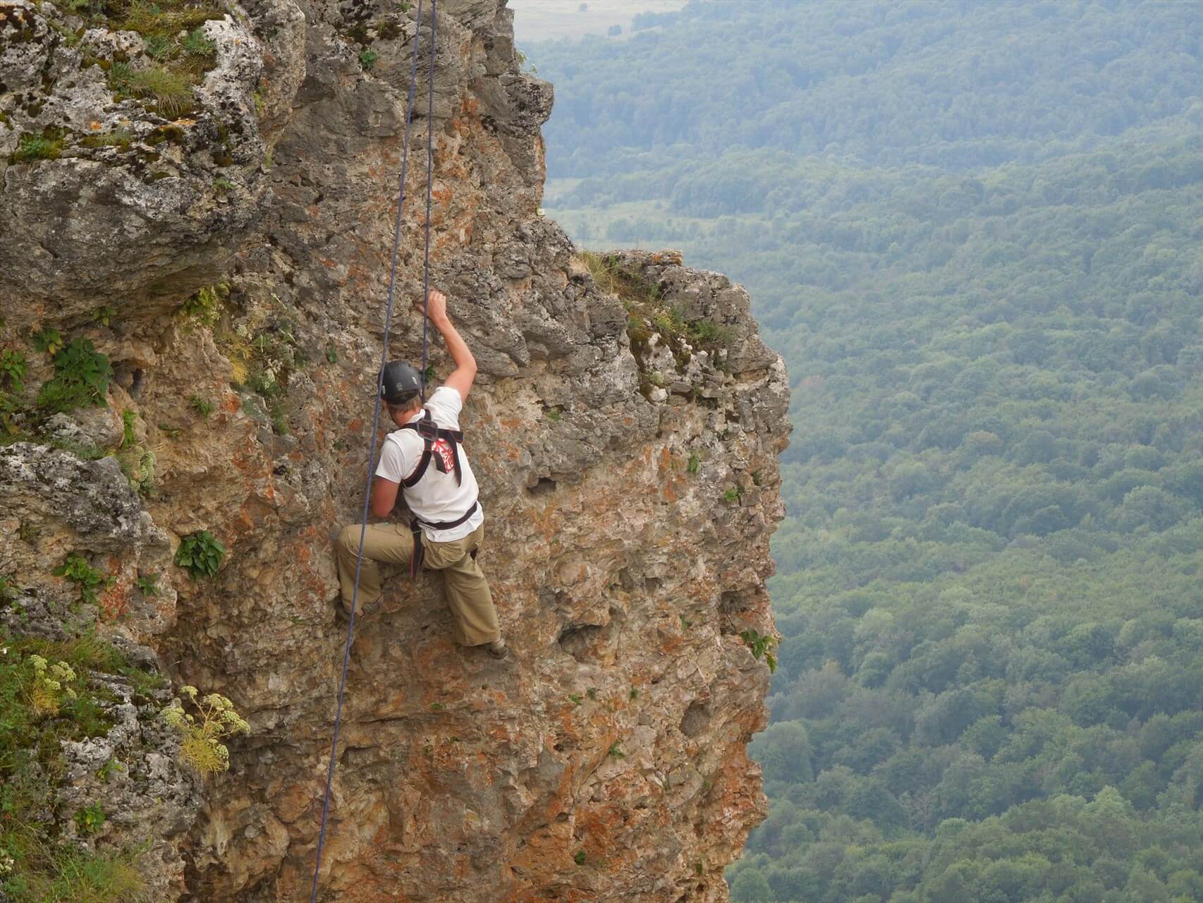 Скалолазание. Маршрут разработан для начинающих скалолазов на специально подготовленных трассах (отвесные стены от 10 до 25 м).