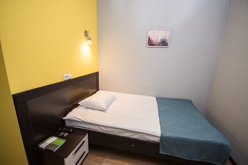 Однокомнатный номер с односпальной кроватью и ванной комнатой. Площадь номера - 12 кв. м.