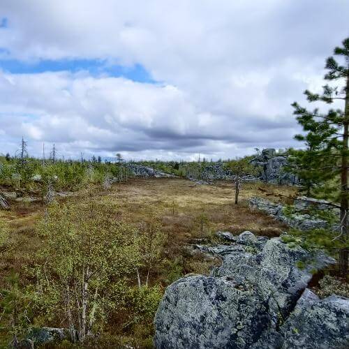На вершине горы Большая Ваара возвышается Древний Чертов стул – загадочный природный памятник, овеянный мифами и легендами. Его каменные очертания, напоминающие уютное сидение, словно созданы самой природой для созерцания величественных просторов вокруг. Окруженный зелеными елями и соснами, Чертов стул представляет собой оазис тишины и спокойствия. С этой высоты открывается захватывающий вид на бескрайние леса и озера, отражающие небесную синь. Мягкий ветер шепчет в листве, а солнце, пробиваясь сквозь деревья, играет золотыми бликами на камнях, создавая атмосферу волшебства. Это место, где природа словно остановилась на мгновение, приглашая каждого, кто сюда придет, задуматься о вечности и чудесах мира.