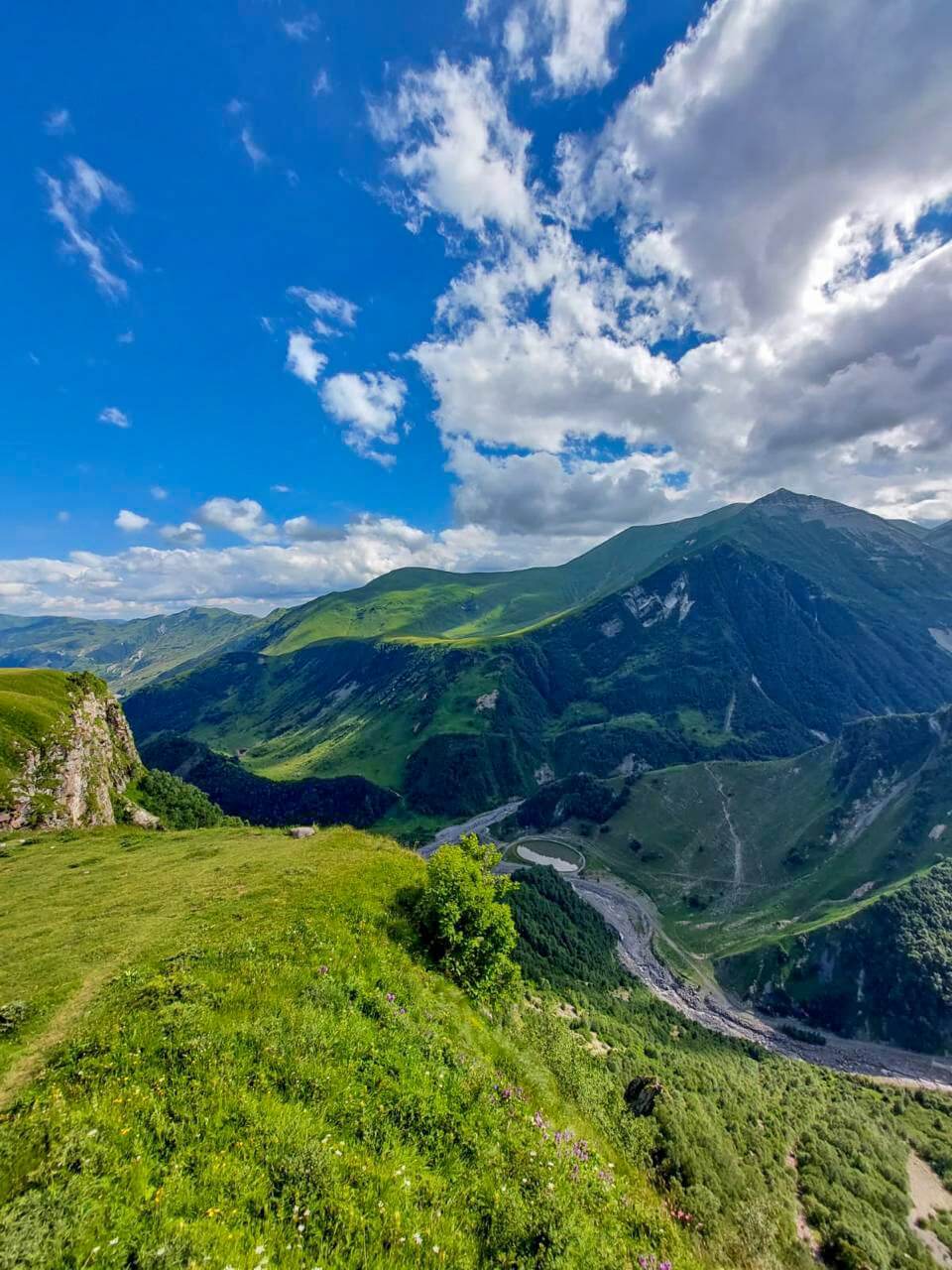 Вас ждёт дорога через живописные предгорья Грузии с потрясающими панорамами.