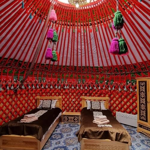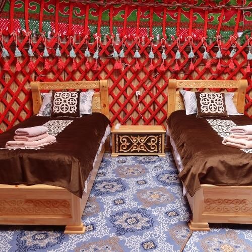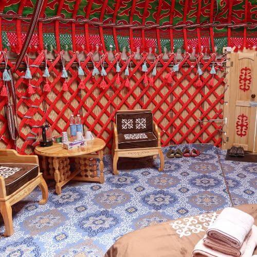 - Юртовый лагерь «Поляна эдельвейсов»: «Стандарт» – размещение в кемпинговых палатках;