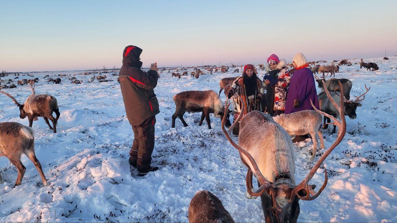 Выезд в тундру к месту, где пасется стадо северных оленей.