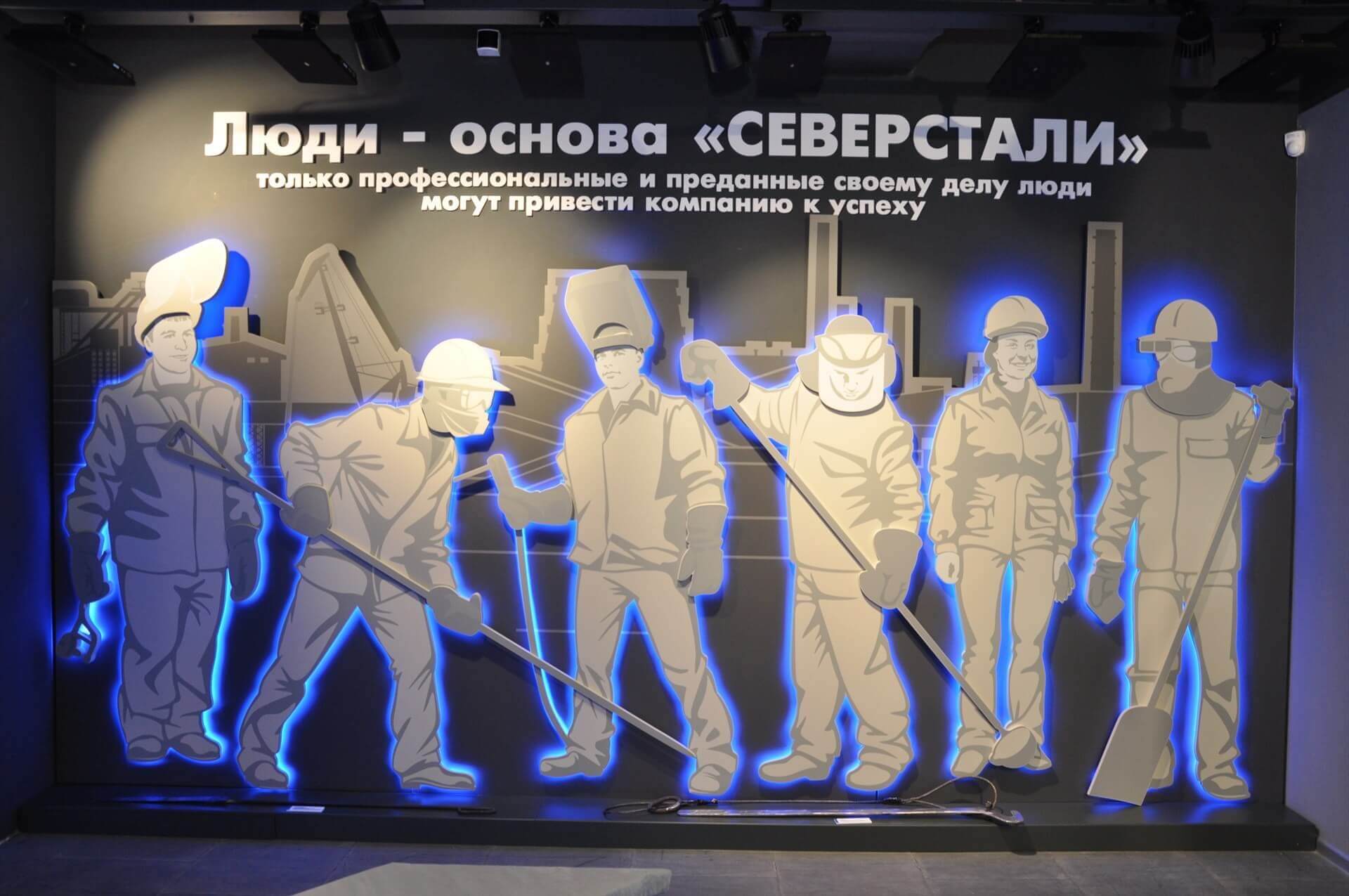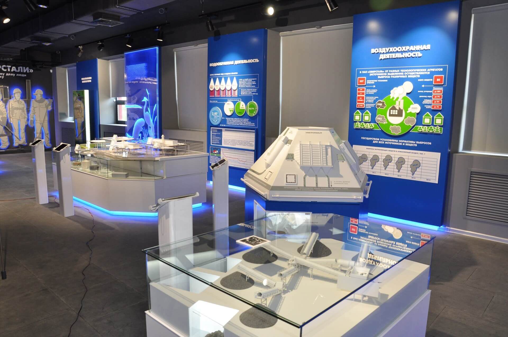 В уникальном зале второго этажа – «Металлоториуме» – вы увидите трехмерное изображение Череповецкого металлургического комбината со всеми цехами и подразделениями.