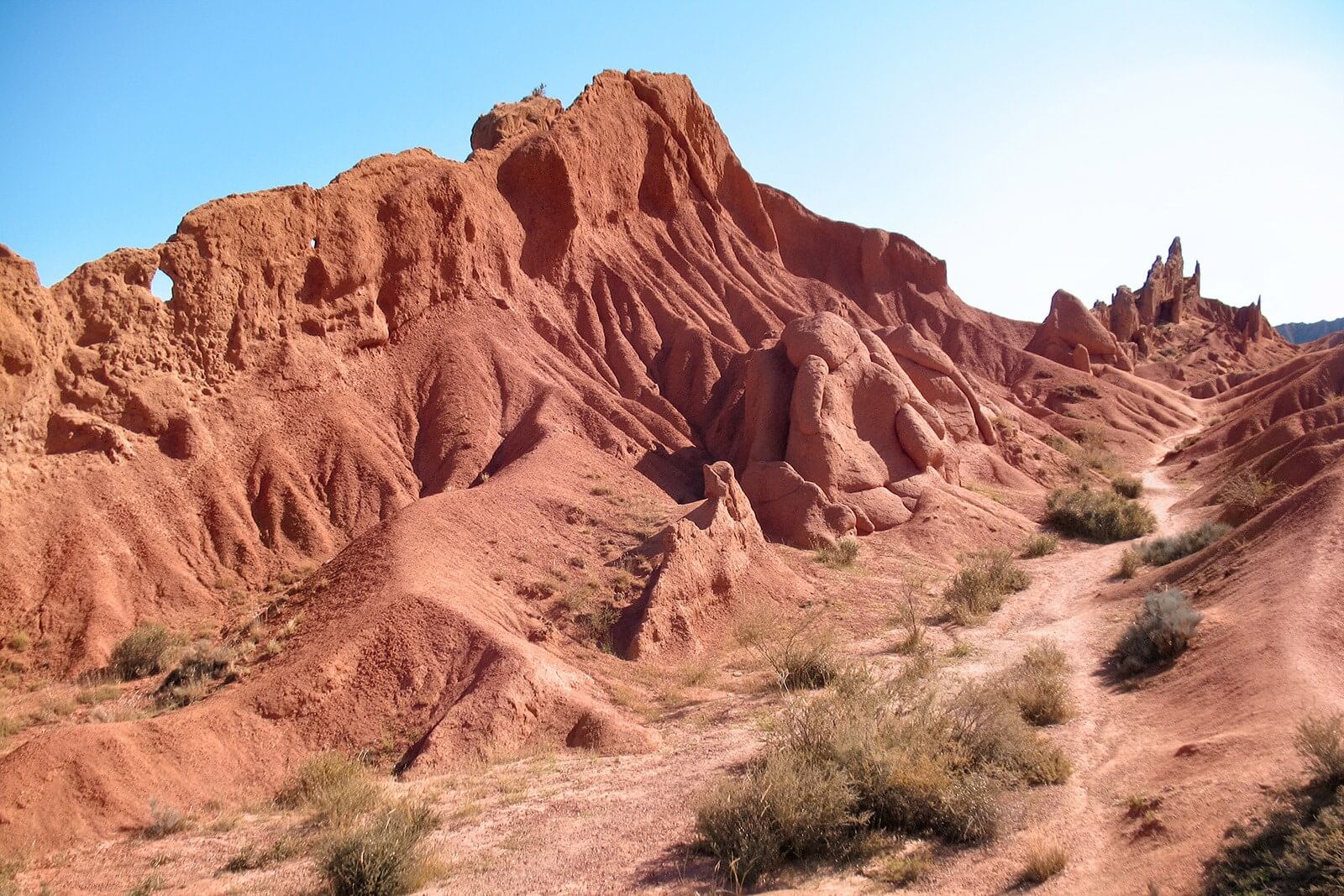 Экскурсия по живописному каньону из песка и окаменелой глины красного цвета. Прогулка между сказочными замками и башнями по извилистому лабиринту, дно которого усыпано кустами эфедры. Тут есть даже необычный каньон, напоминающий Великую Китайскую стену.